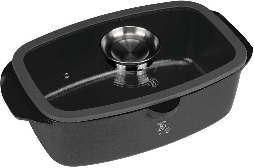 Berlinger Haus Roaster ze szklaną pokrywką i gałką Aroma BH8771 – matowy antracyt Berlinger Haus Roaster BH8771 w matowym antracycie został zaprojektowany, aby ułatwić gotowanie i uczynić je zdrowszym. Wykonany z wytrzymałego odlewu aluminiowego z wysoce wydajną 2-warstwową powłoką zapobiegającą przywieraniu titanPro , ten rożen pozwala gotować z mniejszą ilością oleju i oszczędzać energię. Jego duża pojemność i zaawansowane funkcje, takie jak pokrętło aromatu i pokrywa ze szkła hartowanego, sprawiają, że jest idealny do rodzinnych posiłków i przyjęć. Patelnia z pokrywką szklaną i gałką do aromatu Berlinger Haus BH8771 ✨ Główne cechy palarni BH8771 Premium Cast Aluminium z powłoką zapobiegającą przywieraniu TitanPro Wykonany z odlewanego aluminium , ten brytfan zapewnia równomierne rozprowadzanie ciepła, co zapewnia równomierne gotowanie. Dwuwarstwowa powłoka zapobiegająca przywieraniu TitanPro umożliwia gotowanie z minimalną ilością oleju, dzięki czemu posiłki są zdrowsze i łatwiejsze do czyszczenia. Duża pojemność 6 l Dzięki pojemności 6 litrów i rozmiarom Ø32 x 21 x 10,6 cm ten brytfanna doskonale nadaje się do przygotowywania dużych porcji, niezależnie od tego, czy przygotowujesz posiłek dla rodziny, czy przyjmujesz gości. Energooszczędne dno indukcyjne Dzięki dnu przystosowanemu do indukcji , ten brytfan nagrzewa się szybko i wydajnie na wszystkich rodzajach kuchenek, oszczędzając do 35% energii w porównaniu z tradycyjnymi naczyniami kuchennymi. Gałka ze stali nierdzewnej do kontroli aromatu Gałka ze stali nierdzewnej do kontroli aromatu na pokrywie pozwala dodawać zioła, oleje lub wino podczas gotowania, wlewając aromaty bezpośrednio do potraw bez zdejmowania pokrywy. Ta funkcja pomaga z łatwością tworzyć bogate, pełne smaku posiłki. Pokrywka ze szkła hartowanego z silikonową obręczą dla bezpiecznego dopasowania Pokrywka ze szkła hartowanego z silikonową obręczą zapewnia wyraźny widok na gotowanie, zapewniając jednocześnie bezpieczne, odporne na ciepło dopasowanie. Ta konstrukcja pomaga zachować wilgoć i smaki, zapewniając pyszne, delikatne rezultaty. Możliwość używania w piekarniku do 200°C. Naczynia można bezpiecznie używać w piekarniku w temperaturach do 200°C , co zapewnia wszechstronność w przypadku wielu przepisów, od smażenia na kuchence po powolne pieczenie.