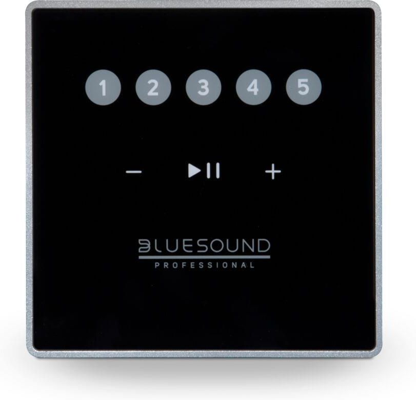 CP100 - Panel sterujący do montażu ściennego Bluesound Professional CP100 to niskoprofilowy panel sterowania do montażu ściennego, przeznaczony dla wszystkich odtwarzaczy Bluesound Professional. Charakteryzuje się eleganckim wyglądem, ze szklanym panelem sterowania z podświetlanymi dotykowymi elementami sterującymi. Panel umożliwia przywoływanie zaprogramowanych ustawień, wstrzymywanie/wyciszanie muzyki oraz regulację głośności w strefie, którą steruje. CP100 został zaprojektowany tak, aby pasował do ściany lub był montowany w wielu różnych obudowach dla ułatwienia instalacji. Elementy sterujące panelu podświetlają się w razie potrzeby, a sterowanie można zablokować w celu ochrony przed niezamierzonym lub nieupoważnionym użyciem. Smukła, niskoprofilowa konstrukcja Podświetlane elementy sterujące ułatwiają obsługę w każdym środowisku Szklana powierzchnia umożliwiająca łatwe czyszczenie Regulacja głośności i odtwarzanie/pauza/wyciszenie Możliwość przywołania 5 zaprogramowanych ustawień Złącze RJ45 i zasilanie PoE ułatwiające instalację Zgodność z szeroką gamą międzynarodowych opraw oświetleniowych/elektrycznych back-boxów