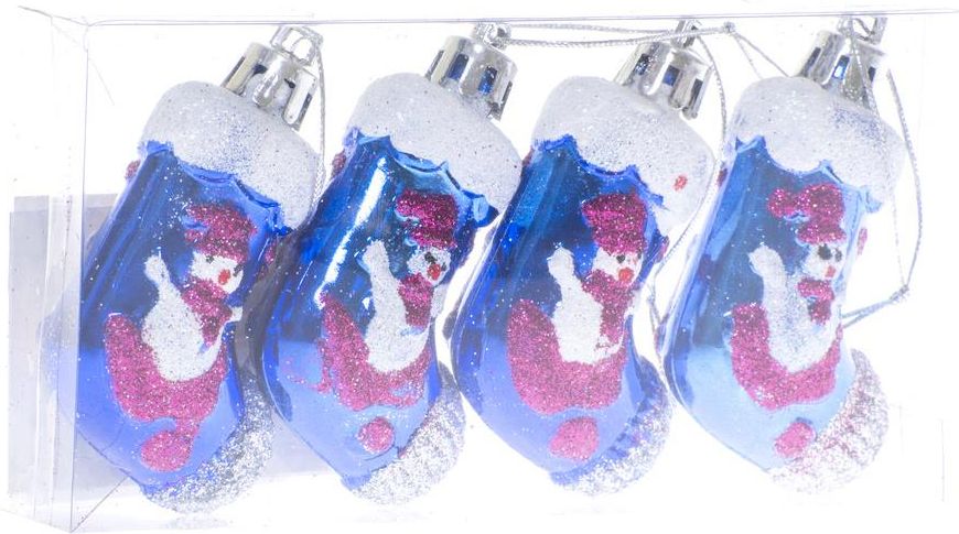 Bombki skarpetki granatowo-srebrne 4 sztuki 6cm; kod produktu: BAI0370G Bombki skarpetki granatowo-srebrne 4 sztuki 6cm Bombki choinkowe przygotowane w kształcie skarpetek. Na ich powierzchni umieszczono wzór - bałwanka. Stanowią bardzo atrakcyjną formę dekoracji bożonarodzeniowego drzewka, podkreślającą klimat i nastrój świąt. Wprowadzają do wnętrza ciepłą atmosferę i cieszą oko. Wymiary: około 6 cm Opakowanie: 4 sztuki Kolor: granatowo-srebrne