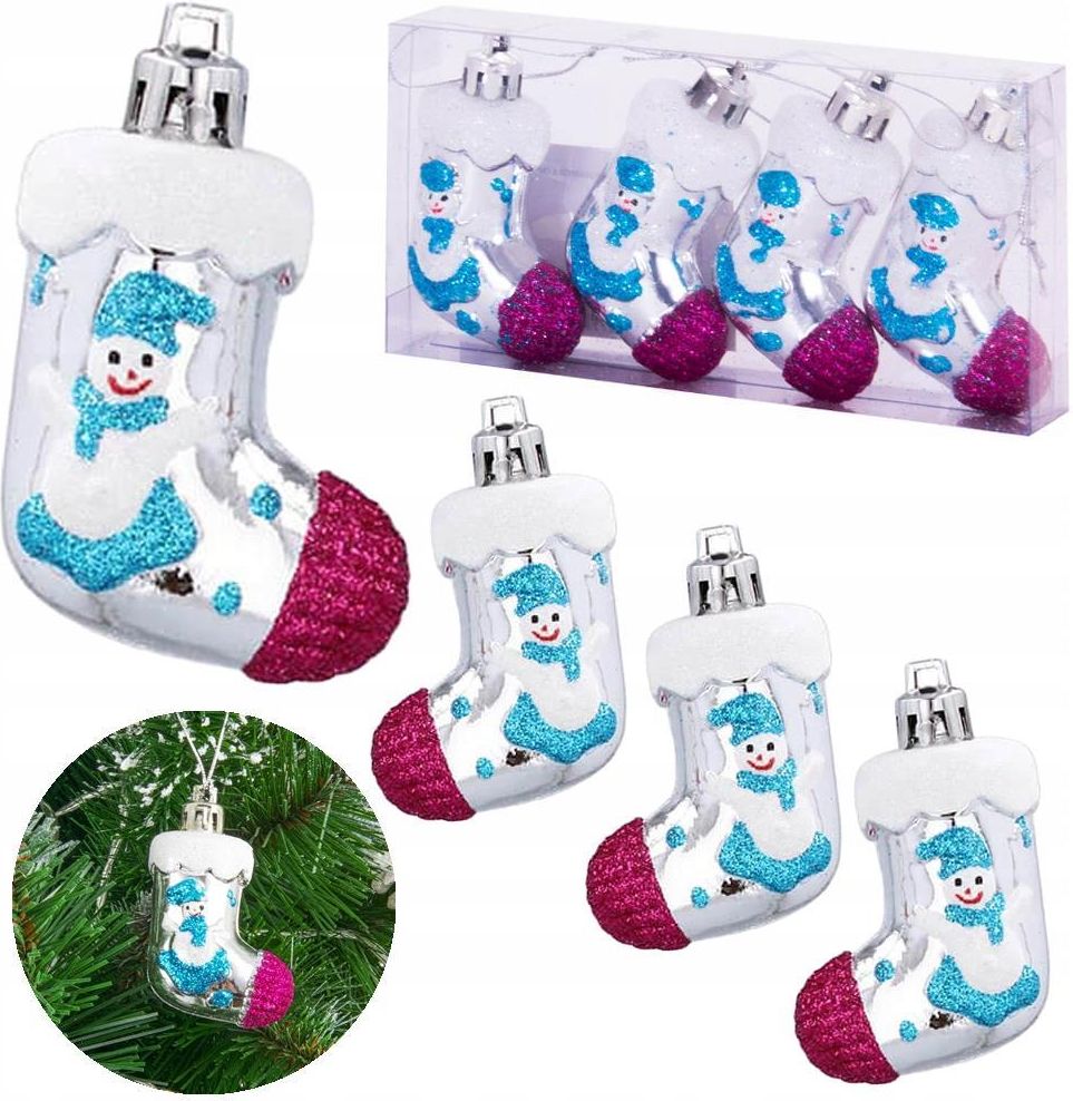 Bombki Skarpetki Srebrno-Różowe 4szt. 6cm Sulejówek