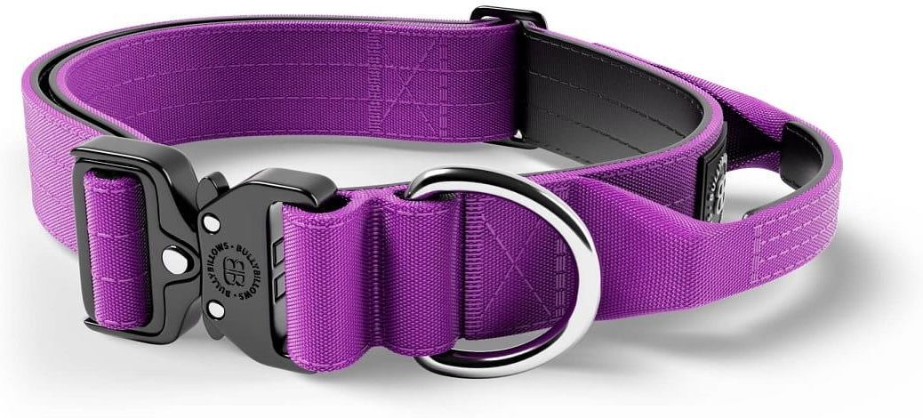 4cm Combat® Collar With Handle BULLYBILLOWS obroża dla psa z uchwytem fioletowa Obroża bojowa BullyBillows jest wyposażona w potrójnie szyty nylon, bezpieczną 6-milimetrową pętlę D ze stali nierdzewnej oraz specjalnie wykonany klips do szybkiego odpinania i zapinania. Aby zapewnić najwyższą …