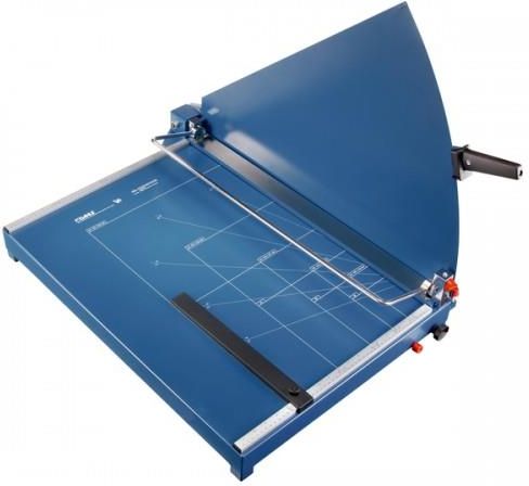 Gilotyna z dociskiem dźwigniowym i ostrzem do różnych materiałów - Wysokiej jakości gilotyna do zastosowań przemysłowych - Solidny metalowy blat z antypoślizgowymi gumowymi nóżkami zapewniającymi stabilność - Praktyczne linie kształtów na blacie stołu ułatwiają organizację wycinanego materiału - Mocna rękojeść ze specjalnie wyprofilowaną ochroną palców - Nóż górny ze stali Solingen przykręcony do mocnej stalowej końcówki, szlifowany i hartowany - z możliwością ostrzenia - Nóż dolny ze śrubami ze stali Solingen, szlifowany i hartowany - Wysokiej jakości nóż stalowy z ostrzeniem ze stali Solingen - Mocny metalowy uchwyt ostrza zapewniający optymalną stabilność, mocowanie śrubowe - Stabilna stalowa pokrywa - Noże mogą ciąć wiele różnych materiałów i mają inny szlif niż noże papierowe. Podanej wysokości cięcia materiału nie można zastosować do wszystkich ciętych materiałów. Szczególnie przy cięciu papieru należy bezwzględnie unikać wykorzystania całej ustawionej wysokości cięcia. Zalecana jest tutaj gilotyna z nożem do papieru. - Docisk dźwigniowy zapewnia stabilizację ciętego materiału - Dwa ostrza o milimetrowej skali umożliwiają precyzyjne cięcie pod kątem 90° - Regulowana metalowa ogranicznik tylny ze śrubą do szybkiej regulacji kształtu - możliwość montażu na obu prowadnicach - Wysuwany przedni ogranicznik do 210 mm do cięcia równych pasków - Można zablokować, aby zapobiec nieautoryzowanemu użyciu - Gilotyn DAHLE 589 z nożem do różnych materiałów - Praktyczny stół z półką na ścinki dostępny w wyposażeniu dodatkowym, optymalna wysokość cięcia 74 cm (619) - Docisk ciętego materiału: dźwigniowy z regulacją siły docisku. - Dedykowana do cięcia trudnych materiałów np.: skór, tworzyw sztucznych, cienkich blach alu, mosiądz, stal do 0,8 mm. Zastosowanie profesjonalne: Zawsze gotowa zapewnić najwyższą wydajność. Długość cięcia 700 mm Z nożem przeznaczonym do cięcia różnych materiałów Można zablokować aby zapobiec nieuprawnionemu użyciu 5 lat gwarancji na produkt (z wyjątkiem części ulegających zużyciu). 2 lata gwarancji na sprawność działania przy prawidłowej obsłudze. Niemiecka technologia Dahle Stabilna blaszana osłona noża Docisk dźwigniowy zapewnia stabilizację ciętego materiału Regulowany metalowy ogranicznik tylny na śrubkę do szybkiego dopasowania formatu - może być mocowany na obu listwach