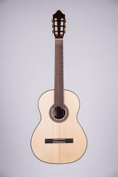 Gitara klasyczna 4/4Top: Lity świerk AlpejskiBoki i tył: Lity PalisanderGryf: Cedr (ze wzmocnieniem z palisandru Santos)Łączenie gryfu: "Spanish Heel"Podstrunnica: HebanMost: Palisander SantosSiodełko: KośćWykończenie: Wysoki połyskBinding: Palisander East IndianStruny: SavarezSkala: 650mmSzerokość siodełka: 52mm...