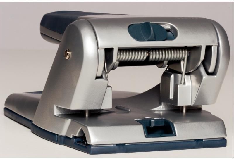 Mocny dziurkacz do grubego pliku kartek. Aluminiowa podstawa i ramię ułatwiają pracę i zapewniają dużą stabilność. Dwuczęściowa, antypoślizgowa podstawa nie rysuje blatu i ułatwia opróżnianie ścinek. Blokada ramienia pozwala przechowywać dziurkacz z maksymalnie obniżonym ramieniem. Metalowy, precyzyjny ogranicznik formatu, również dla formatu A3. Cechy produktu: - dziurkuje do 65 kartek - średnica dziurek 5,5 mm - odległość między dziurkami 80 mm - z ogranicznikiem formatu (A3, A4, A5, A6, Folio, Us Quart, 8x8x8) - 10 lat gwarancji