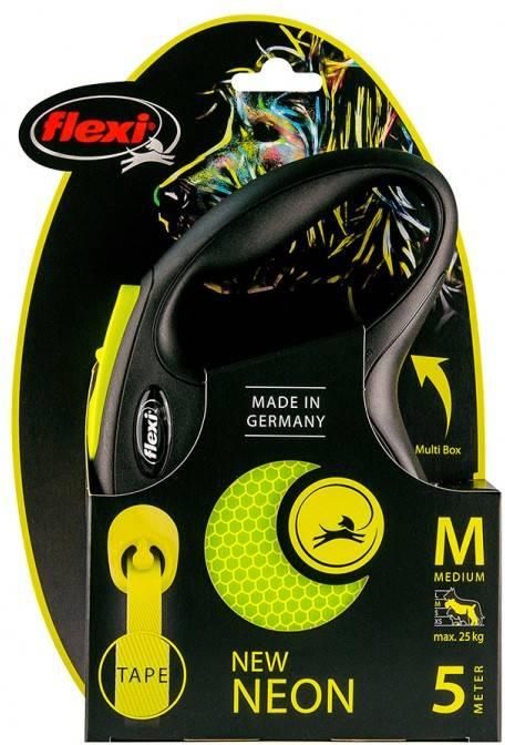 Smycz Flexi New Classic M taśma 5m 25kg yellow neon