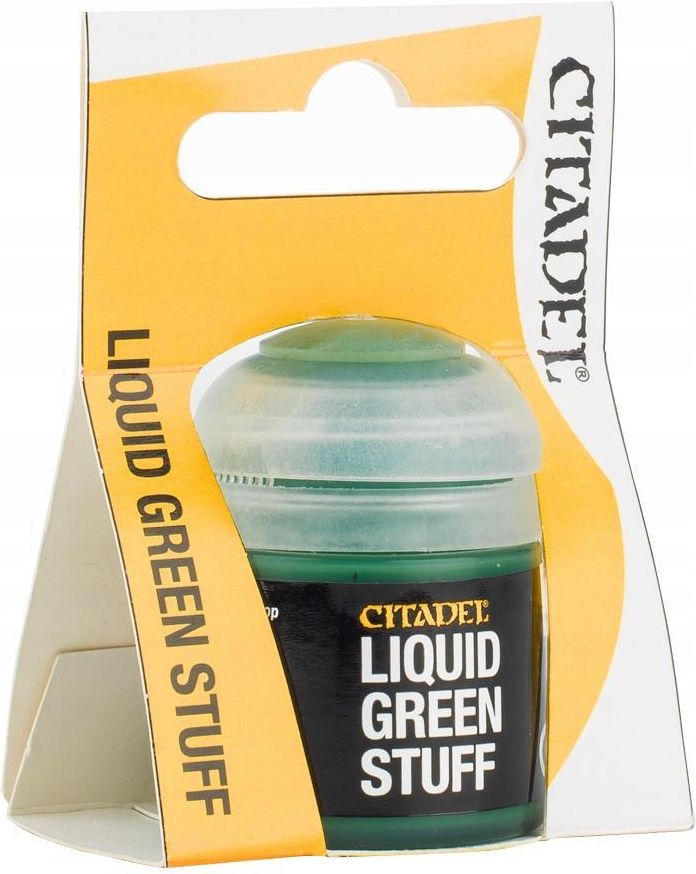 Citadel Liquid Green Stuff Masa do wypełniania małych ubytków. Po zaschnięciu można szlifować. Pojemność 12 ml. Ideal for filling in small gaps on miniatures, Liquid Green Stuff has been designed for hobbyists and enthusiasts who want a smooth, even finish when converting or modifying their models. Water soluble, with a striking label making it stand out from your Citadel paints, Liquid Green Stuff can be easily filed down with a Citadel File once set. Contains 12ml of Liquid Green Stuff.