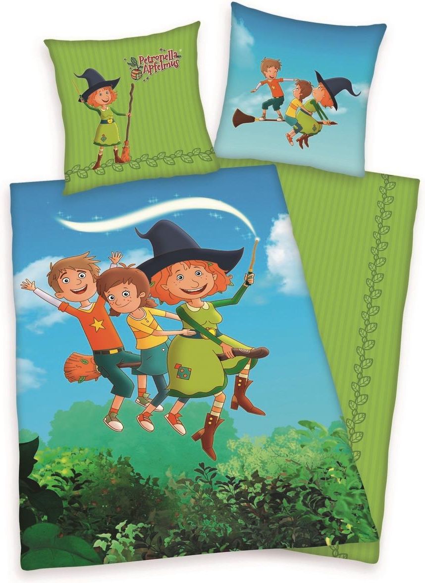 Pościel, w której zakochasz się od pierwszego wejrzenia. Z oryginalnym motywem z filmu animowanego Petronela Apfelmus zachwyci każdego i z pewnością nie może zabraknąć jej w pokoju dziecięcym. Dodatkowo pościel wyczaruje uśmiech na twarzy dziecka, a jednocześnie stanie się wspaniałym dodatkiem do jego pokoju. Przyjemna bawełna gwarantuje komfortowy i spokojny sen. Pościel posiada certyfikat Öko-Tex Standard 100. Zestaw zawiera: · 1 poszewkę na poduszkę 70 x 90 cm · 1 poszwę na kołdrę 140 x 200 cm