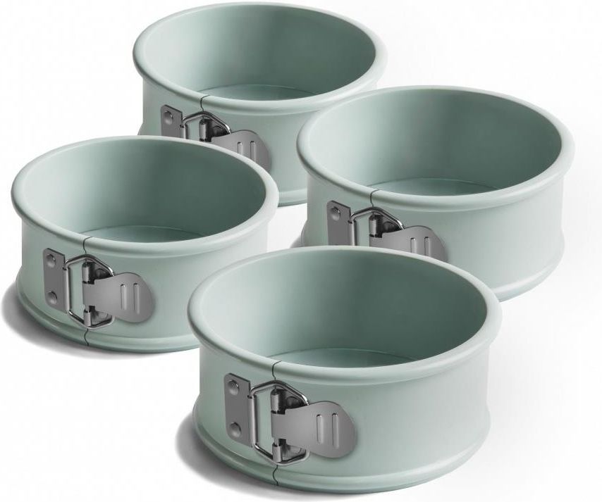 Małych tortownica z rozpinanym brzegiem do pieczenia ciast w formacie mini, będzie idealna do pieczenia biszkoptów, serników oraz spodów kruchych tart. Pozwól sobie, aby smak i zapach domowego ciasta był obecny z Tobą nie tylko od święta.Jamie Oliver to znany i ceniony na całym świecie kucharz, który w oparciu o swoją kuchenną wiedzę i doświadczenie w tej dziedzinie stworzył serię kuchennych przyborów, m.in. doskonałe formy do pieczenia z 25-cio letnią gwarancją producenta. Forma do pieczenia wykonana została z węglowej stali dwukrotnie powleczonej nieprzywierającą powłoką Qantum II, przypominającą emalię w kolorze pastelowego błękitu. Ścianki formy są grube, a walcowane krawędzie zapobiegają ich odkształcaniu się. Stal węglowa nagrzewa się równomierne co gwarantuje doskonałe, regularnie wypieczone ciasto. Formy można używać do temperatury 240°C. Dla zachowania właściwości nieprzywierających zaleca się mycie ręczne.Tortownica posiada rozpinane brzegi, co znacznie ułatwia wyciąganie ciasta z formy. Forma ma średnicę 10 cm i wysokość 4 cm. Główne zalety: wykonane z powlekanej stali węglowej dwukrotnie pokryte nieprzywierającą powłoką Quantum II dzięki powłoce pieczone ciasta nie przywierają do dna i ścian formy oraz ułatwiają ich czyszczenie ciężka i solidna forma zalecane mycie ręczne 25 lat gwarancji producenta