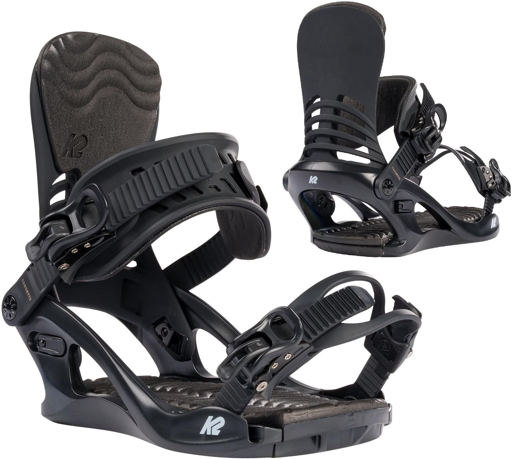 Wiązania snowboardowe damskie K2 Cassette to innowacyjny sprzęt stworzony z myślą o snowboardzistkach, które poszukują idealnego połączenia komfortu i kontroli nad deską. Są one doskonale przystosowane do rozwoju umiejętności, oferując funkcje wspierające progresję w każdym aspekcie jazdy na snowboardzie. Podstawa A-Line™ Chassis w wiązaniach Cassette jest solidna i trwała, a jednocześnie lekka. Jej konstrukcja jest skoncentrowana na zapewnieniu stabilności i odpowiedniej reakcji na ruchy riderki, co jest niezbędne dla precyzyjnego manewrowania na stoku. Pasek na kostkę P.I. Ankle Strap oferuje doskonałe trzymanie i wygodę . Jest on zaprojektowany tak, aby zapewniać równomierne rozłożenie nacisku na kostkę, co przekłada się na pewność i stabilność podczas jazdy. System Perfect Fit™ Toe Strap umożliwia dokładne dopasowanie paska do przedniej części buta. Elastyczny materiał paska dostosowuje się do kształtu buta, zapewniając stabilność i skuteczność w przenoszeniu siły na deskę.