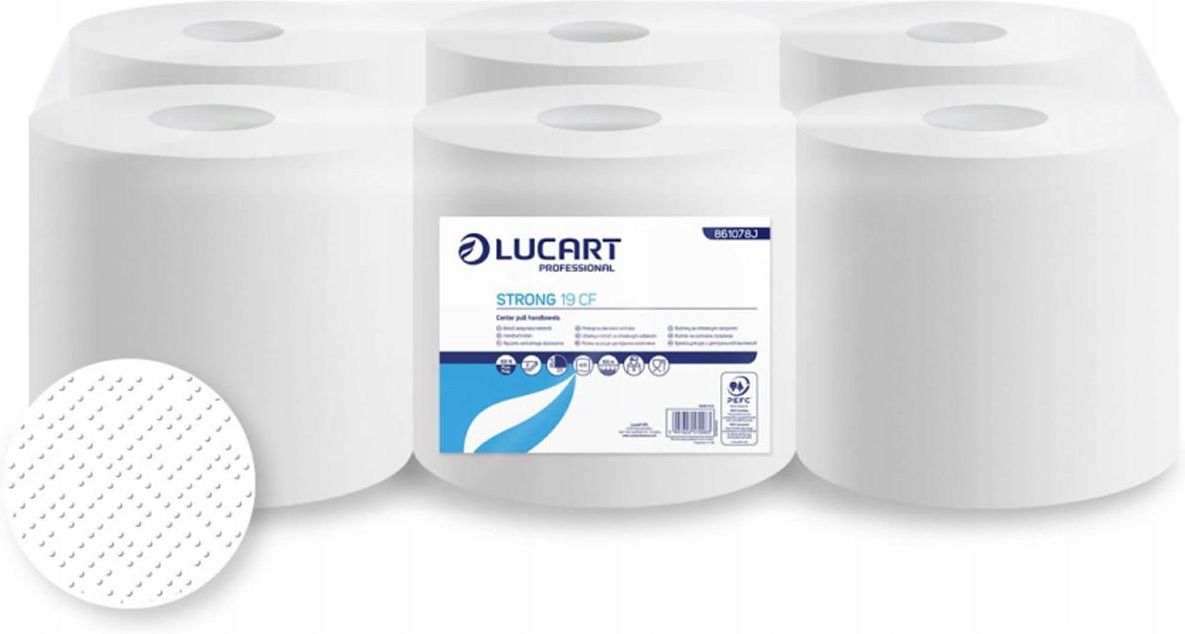 Lucart Strong 19 CF - Ręcznik w roli, 2 warstwy, 100 m, celuloza - 6 rolek Producent: Lucart Professional | Marka: Lucart Kod: 861078J Opis Prezentowany ręcznik w roli Strong 19 CF marki Lucart, to rozwiązanie łączące dużą wydajność oraz świetną jakość. Dzięki temu od lat jest popularnym wyborem wśród takich miejsc jak nowoczesne biurowce czy restauracje. Sprawdzi się wszędzie tam, gdzie chcemy zadbać kompleksowo o nawet najbardziej wymagających gości. Czysta celuloza zastosowana w ręczniku jest pozyskiwana z odpowiedzialnych źródeł i gwarantuje przede wszystkim wysoką chłonność, dzięki czemu będzie doskonałym wsparciem podczas osuszania dłoni oraz zbierania różnego rodzaju rozlanych płynów. Przekłada się to bezpośrednio na poprawienie przepustowości naszych łazienek, co ma szczególne znaczenie zwłaszcza w miejscach o dużym natężeniu ruchu. W ten sposób użytkownicy naszych łazienek zużywają także mniej listków ręcznika do wytarcia rąk, przez co oferowane opakowanie wystarczy na dłużej. Prezentowany ręcznik jest miękki i po prostu przyjemny w dotyku, dzięki czemu sprawia wrażenie bardziej luksusowego. W połączeniu ze schludnym, białym kolorem oferowany ręcznik papierowy świetnie wpasuje się w przestrzeń o wyższym standardzie. Jedna rolka ręcznika papierowego Strong 19 CF ma długość 100 metrów, co przy zakupie całego opakowania daje nam łącznie aż 600 metrów produktu. Taka ilość sprawdzi się doskonale przede wszystkim w miejscach o bardzo dużym natężeniu natężeniu ruchu, np. w restauracjach, pubach, szpitalach czy w galeriach handlowych. Ręcznik został zaprojektowany przede wszystkim, aby zwiększyć poziom higieny oraz zredukować ilość odpadów i niepotrzebne koszty. Połączenie prezentowanego ręcznika z kompatybilnym dozownikiem stanowi bardzo wygodny sposób na zachowanie 100% higieny, ponieważ mamy gwarancję, że nikt wcześniej nie dotykał używanego przez nas ręcznika papierowego. W ten sposób możemy także zniwelować nadmierne rozwijanie rolki i wydłużyć jej żywotność. Wszystko to wyraźnie zmniejszy koszty utrzymania naszych łazienek. Cechy produktu Duża ilość - 100 m ręcznika w 1 roli Przyjemne w dotyku Bardzo chłonne Duża odporność na rozdarcia = mniejsze zużycie Dopuszczone do kontaktu z żywnością Czysta celuloza pozyskiwana z odpowiedzialnych źródeł Kompatybilne produkty Ręcznik jest kompatybilny z dyspenserami marki Lucart w systemie centralnego dozowania. Parametry Materiał wykonania: Celuloza Liczba warstw: 2 Wysokość rolki: 20,4 cm Szerokość rolki: 23 cm Długość rolki: 100 m Kolor: biały Jednostka sprzedaży: karton = 6 rolek Perforacja: nie