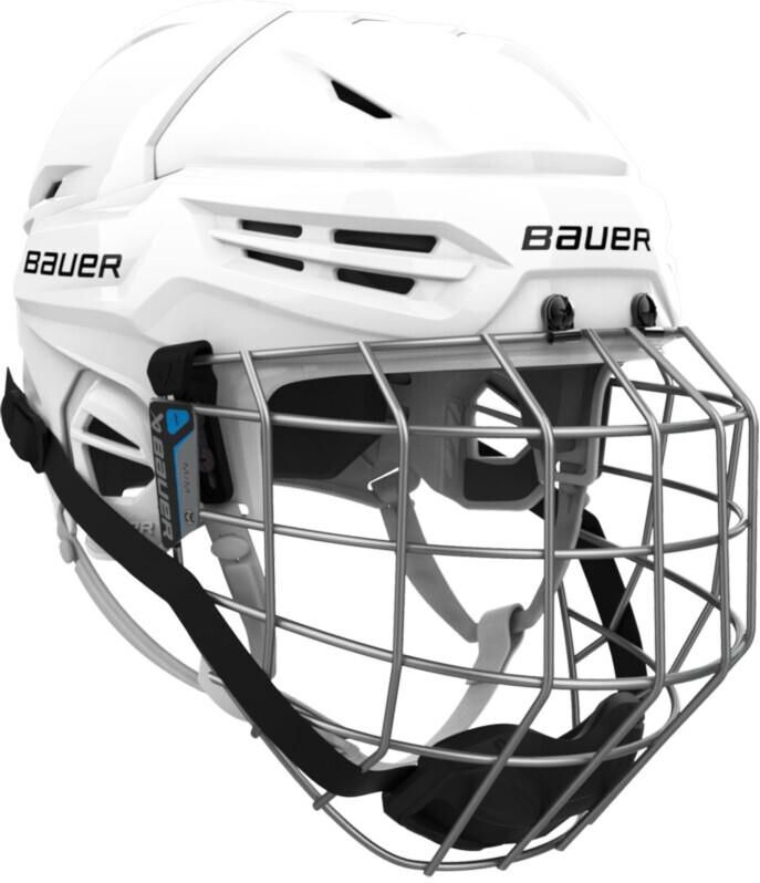 Kask hokejowy - Senior • Wydajność • Poziom ochrony: zwiększona o • Kolor: biały • Materiał wyściółki: 3D-Molded EPP base with VN Foam - Combination of soft and mid density foam • System regulacji rozmiaru: szybkie zwalnianie bez użycia narzędzi • Nie • Kratka: ano