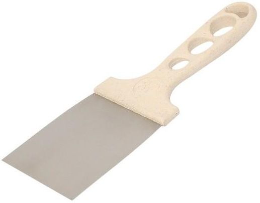 ergonomiczny, drewniano-plastikowy uchwyt (40% drewna, 40% polipropylenu, 15% szkła, 5% dodatków)wyczuwalna faktura drewna - wytrzymałość plastikustal nierdzewna, blacha kwasoodporna: 0,5 mmnadaje się do nakładania gipsu lub innych mas szpachlowych