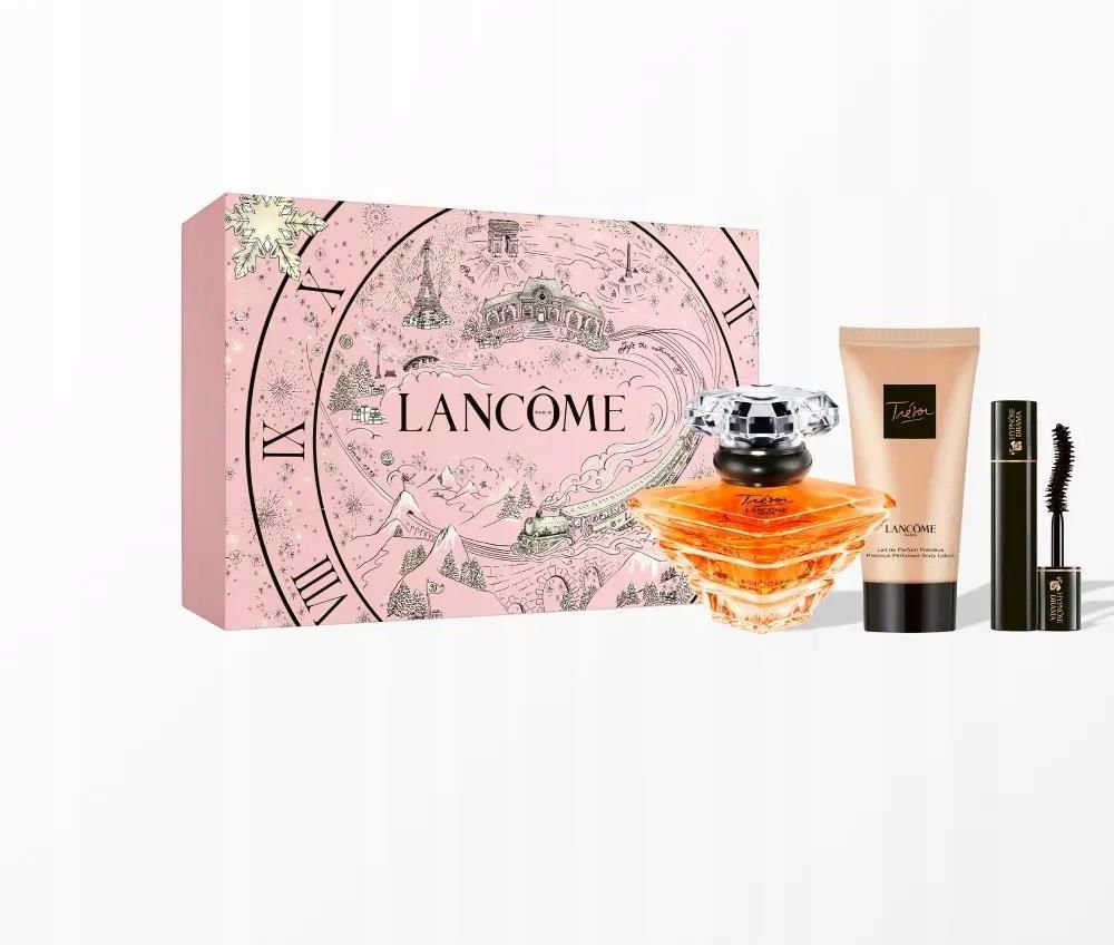 LANCÔME Trésor Zestaw upominkowy . marzycielski zestaw zapachowy w limitowanej edycji Woda perfumowana, balsam do ciała i tusz do rzęs łączy luksus i świąteczny przepych łączy perfumy i pielęgnację ciała w luksusowy sposób Grupa docelowa: damski Nuta bazowa: bursztyn Nuta serca: liliowy Nuta górna: …
