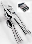 Avanguardia - sztućce ze stali nierdzewnej 18/10 (Solid handle)Elegancki zestaw obiadowy 75 szt. dla 12 osób zawiera: 12 x nóż 12 x widelec 12 x łyżka 12 x łyżeczka do kawy 12 x widelczyk deserowy12 x nożyk deserowy1 x łyżka wazowa1 x łyżka serwująca1 x widelec serwującyluksusowa kaseta …