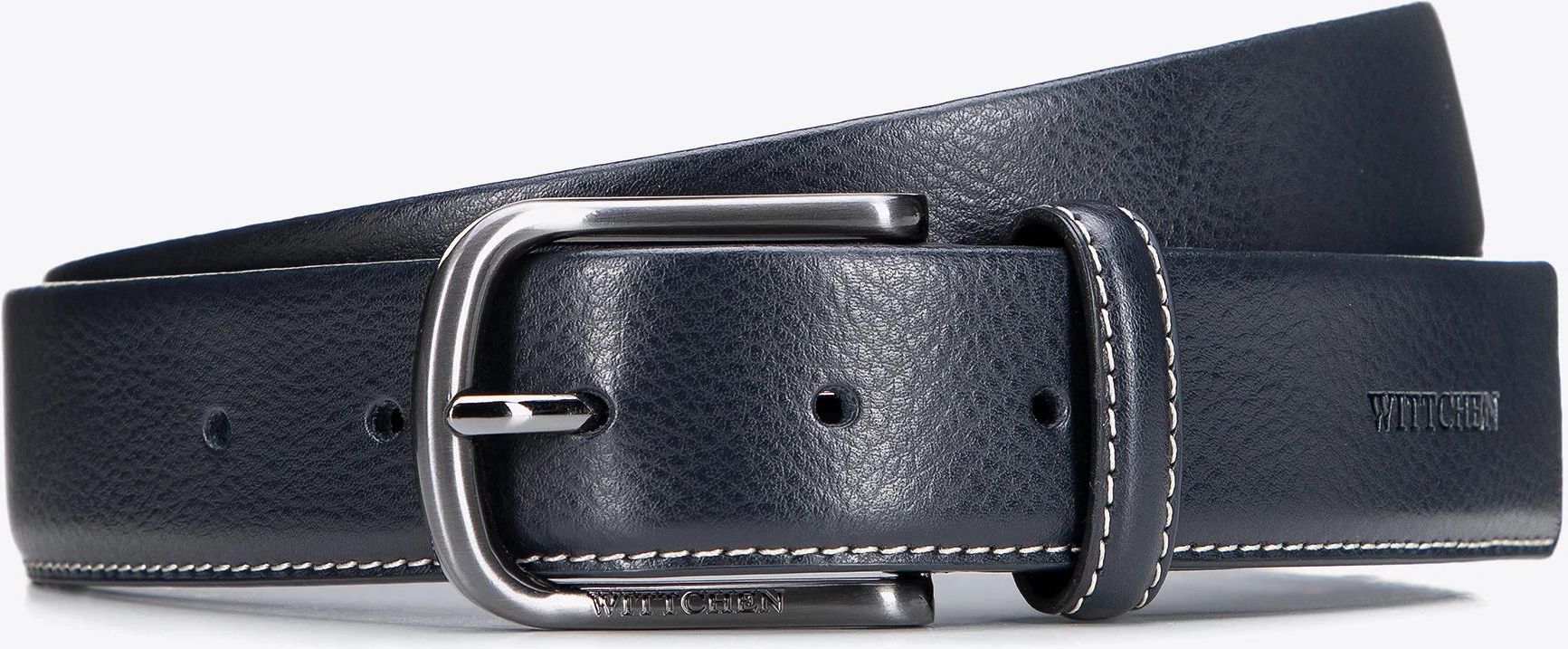 Męski pasek ze skóry naturalnej z kontrastowym stębnowaniem granatowy Sulejówek