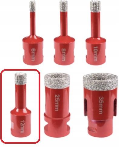 MODECO EXPERT OTWORNICA DIAMENTOWA Ø12MM NA SZLIFIERKĘ Z GWINTEM M14 MN-76-212 AUKCJA DOTYCZY 1SZT WIERTŁA ZAZNACZONEGO NA ZDJĘCIU Idealne do wiercenia otworów w bardzo twardych materiałach wykończeniowych. Wytrzymałość, trwałość i wysoka jakość dzięki zastosowaniu technologii Vacuum Brazed, czyli lutowania próżniowego. Wiercenie na sucho dzięki umieszczonemu w środku otwornic woskowi, który podczas wiercenia topi się i chłodzi część roboczą diamentów. Uchwyt z gwintem M14 pasuje do szlifierek kątowych. Precyzyjne punktowe wiercenie dzięki czemu otwór ma gładkie krawędzie bez pęknięć, odprysków i odłamań. Wysoka wydajność wiercenia nawet w bardzo twardych materiałach dzięki wytrzymałemu i czystemu połączeniu w próżni diamentów z korpusem, które zwiększa odporność na wysokie temperatury oraz tarcie. Max. 12 000 obr./min. pozwala na zastosowanie z większością szlifierek kątowych. Korpus z wytrzymałej stali nie pęka podczas wiercenia nawet małymi średnicami i gwarantuje dużą żywotność. Zastosowanie Do wiercenia otworów w twardych materiałach wykończeniowych takich jak ceramika, gres, terakota, marmur, granit.