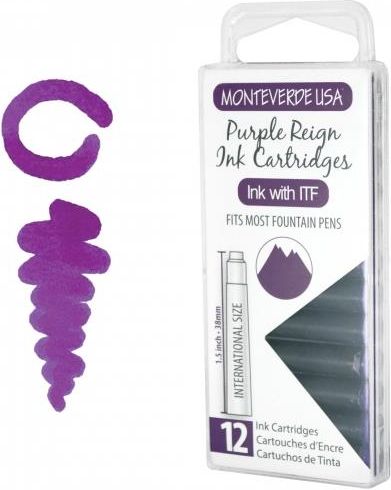 Monteverde Atrament do Piór wiecznych Purple Reign Naboje 12 x Uniwersalne Naboje Atrament - Purple Reign Monteverde USA jest światowym liderem najnowszej technologii produkcji tuszu - ITF ? (Ink Treatment Formula), która znacznie poprawia jakość przepływu atramentu w piórach wiecznych. Ponadto: smaruje i chroni systemy z podawaniem tuszu przed korozją i zatykaniem, poprawia czas schnięcia atramentu na papierze, występuje w szerokiej gamie żywych kolorów, które zapewniają niespotykane doświadczenie pisania, pasują do większości piór