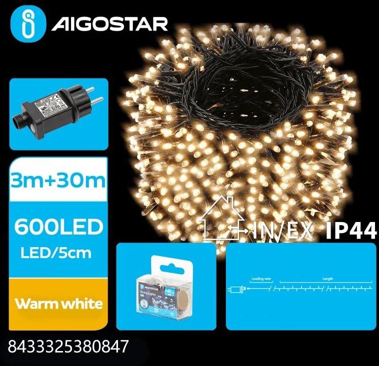 Niskonapięciowa lampki choinkowe 600led to idealne wyposażenie dla wszystkich miłośników świątecznej atmosfery. Ta wyjątkowa dekoracja jest nie tylko piękna, ale także bezpieczna dzięki niskiemu napięciu, co czyni ją idealną do dekoracji zarówno w domu, jak i w ogrodzie. Zestaw składa się z dwóch części: pierwsza to 600 ledów w ciepłej bieli, a druga to dodatkowe 3 metry w ciepłej bieli, które można dowolnie umieścić w wybranym miejscu. Razem dają imponującą długość 60 metrów, co pozwala na efektowne udekorowanie nawet największej choinki lub wykorzystanie ich do stworzenia magicznego tunelu świetlnego w ogrodzie. Lampki są wykonane z wytrzymałego, odpornego na warunki atmosferyczne materiału, co sprawia, że są trwałe i można ich używać zarówno wewnątrz, jak i na zewnątrz. Dzięki temu będziesz mógł cieszyć się pięknym, ciepłym blaskiem przez wiele świątecznych sezonów. Lampki są wyjątkowo energooszczędne, więc nie musisz martwić się o wysokie rachunki za prąd. Dzięki temu możesz bez obaw cieszyć się nastrojowym oświetleniem przez cały sezon świąteczny. Zapomnij o kłopotliwych kablach i paprochów – niskonapieciowa lampka choinkowa jest bardzo prosta w montażu i nie wymaga żadnych dodatkowych narzędzi. Możesz łatwo ustawić ją według swojego pomysłu, dzięki czemu stworzysz niepowtarzalną i spersonalizowaną dekorację. Podsumowując, niskonapięciowa lampka choinkowa 600led w ciepłej bieli to nie tylko praktyczny dodatek do dekoracji świątecznych, ale także gwarancja stworzenia przytulnej i magicznej atmosfery w Twoim domu lub ogrodzie. Dzięki wyjątkowemu designowi i wysokiej jakości wykonania, będzie ona idealnym uzupełnieniem każdego świątecznego wystroju. Kolor produktu:Przewód: ciemnozielony/Adapter: Napięcie: 220-240V~ Maksymalna moc:MAX.6W Opis punktów sprzedaży:600LED; 5 cm/dioda LED; 8 zmieniających się trybów + pamięć + timer Klasa IP:IP44