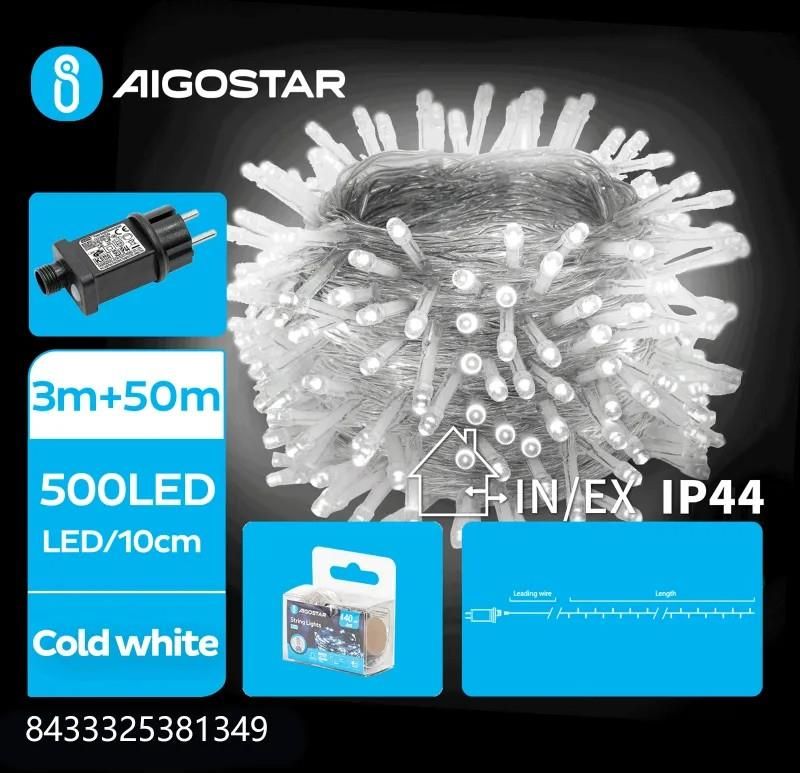 Niskonapięciowe zewnętrzne lampki choinkowe 500led Zimne 50m+3 Niskonapięciowe zewnętrzne lampki choinkowe 500led Zimne 50m+3 Sulejówek