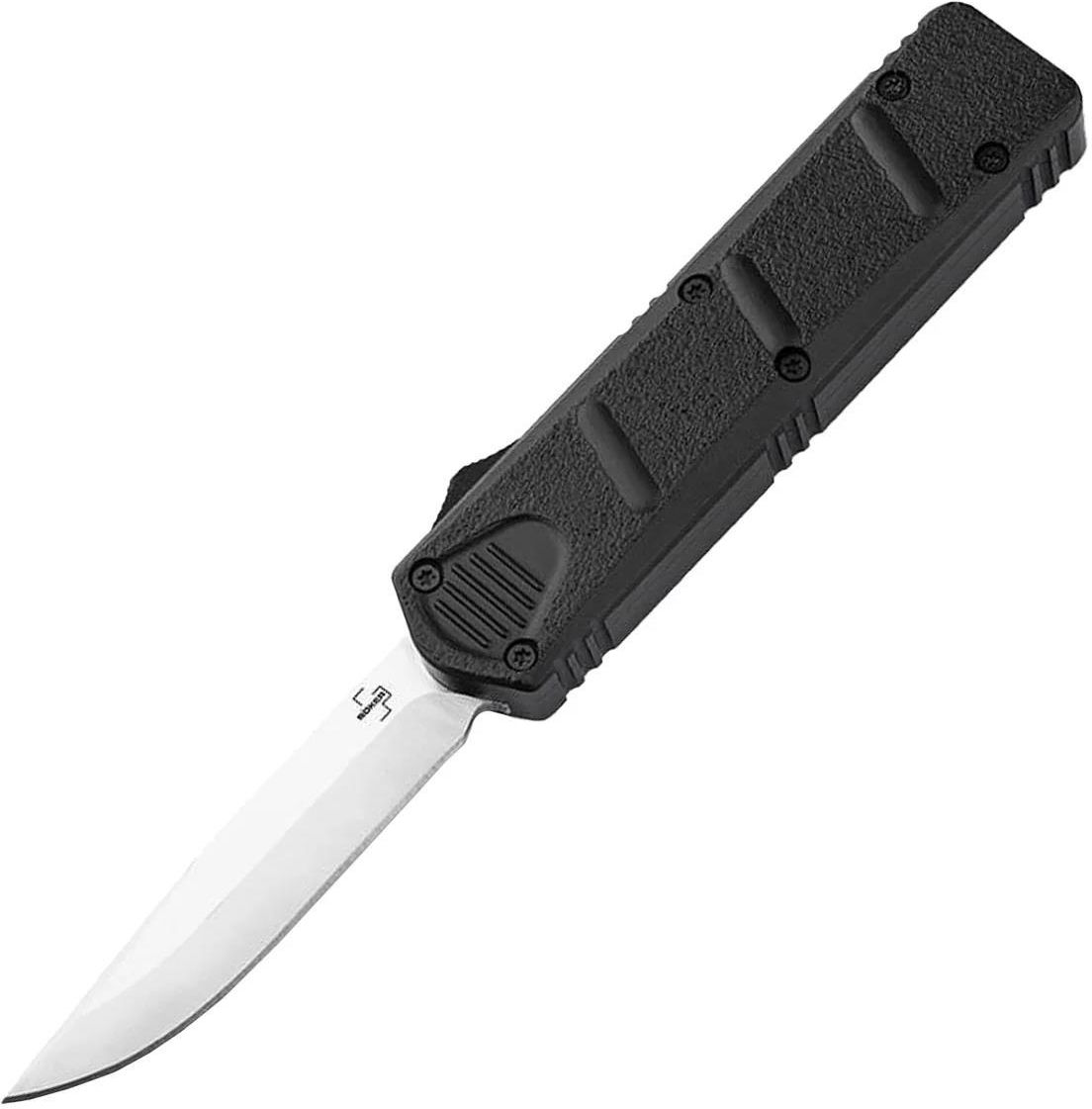 Nóż sprężynowy typu OTF wyposażony w ostrze o profilu drop-point wykonanym wykonana ze stali narzędziowej D2. Nóż otwierany jest za pomocą karbowanego suwaka znajdującego się na rękojeści. Rękojeść w kolorze czarnym wykonano z aluminium 6061-t6 i dodatkowo wyposażono w stalowy klips tip-down.