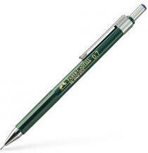 Ołówek automatyczny FABER-CASTELL TK-Fine 9717 o średnicy grafitu 0,7 mm. Kod producenta: 136700 Klasyczny ołówek do kreślenia, rysowania, pisania. Metalowa, całkowicie chowająca się końcówka prowadząca chroni grafit przed złamaniem i nie dziurawi kieszeni. Regulowany metalowy klip pokazuje wskaźnik twardości grafitu w zakresie od 2B do 4H. Oznaczenie kolorystyczne ISO ułatwia szybkie rozpoznanie średnicy wkładu; tutaj 0,7 mm - niebieski. Wymienną gumkę wyposażono w igłę do czyszczenia. Grafit polimerowy HB, wymienny. Dostępne rozmiary: 0,35 mm (9713), 0,5 mm (9715), 0,7 mm (9717) i 1,0 mm (9719).