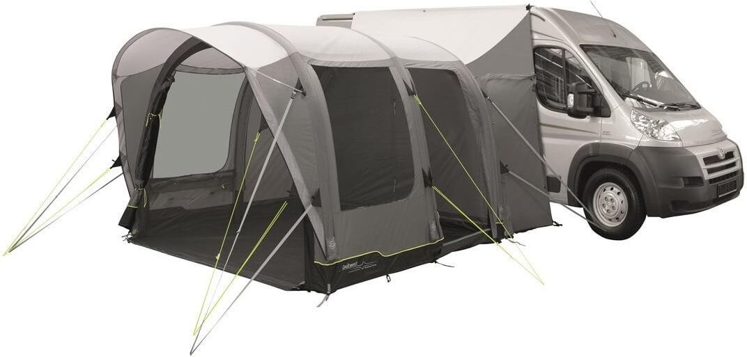 Główne informacje: Typ: Markiza do samochodów dostawczych; Przeznaczenie: Furgonetka; nadmuchiwane: tak; Materiał: Stelaż: Duratec włókno szklane 9,5 mm; Tropik: 100% poliester; Stelaż: Włókno szklane; Podłoga namiotu: 100 % polietylenu; Wodoodporność: Wodoodporność powłoki namiotu: 4000 mm; Wymiary: Waga: 20700 g; głębokosć namiotu: 330 cm; Głębokość daszka: 240 cm; Wielkość po spakowaniu (cm): 77 x 42 x 42; Wymiary po rozstawieniu (cm): 330 x 300; Wymiary wewnątrz (cm): 240 x 300; Zakres dostawy: w komplecie torba z paskiem do noszenia, pompka rowerowa; Szczegóły: Długość montażu na dachu: 280 cm, Wysokość montażu: 240 - 270 cm, Średnica szwu: 7 mm / 5 mm, Rigid Air System - taka konstrukcja ramy zapewnia najlepszą wydajność, maksymalne ciśnienie: 9 psi/0,6 bar, Markiza nadaje się do: Ducato/Boxer/Jumper, materiał trudnopalny, uszczelnione podwójne szwy i szwy zamka błyskawicznego zapobiegają przedostawaniu się wody, aerodynamiczna ochrona przeciwburzowa 10 dzięki prętom ukrytym w kanałach belki, Przegroda na brud i wyjmowana podłoga namiotu zapewniają czystość, wolny od przeciągów dostęp między markizą a pojazdem, oferuje odpowiednią opcję dla wszystkich pasów markizowych w pojazdach kempingowych, wszyta podłoga namiotu chroni przed przeciągami, Owady, W miarę możliwości należy chronić namiot przed brudem i wodą, System HookTrack oferuje wszechstronne możliwości zawieszania lamp i innych przedmiotów o wadze do 1,5 kg., Zasłony z punktami stałymi wygodnie rozmieszczone przy każdym oknie, przyciemniane okna, które oferują ochronę przed słońcem i zapewniają prywatność, mocny plastikowy klips tworzy bezpieczną linę nośną i zapewnia dodatkową stabilność przy silnym wietrze, Kanał kablowy z zamkiem błyskawicznym, za pomocą którego można bezpiecznie poprowadzić kabel zasilający przez namiot, Outwell Easy Pegging System z kołkami w różnych kolorach, zapewnienie stabilnej konstrukcji, Outwell Guyline Retainer System zapobiega plątaniu się linek podczas pakowania, pionowa ściana frontowa z daszkiem dla optymalnej przestrzeni życiowej w namiocie i przed nim