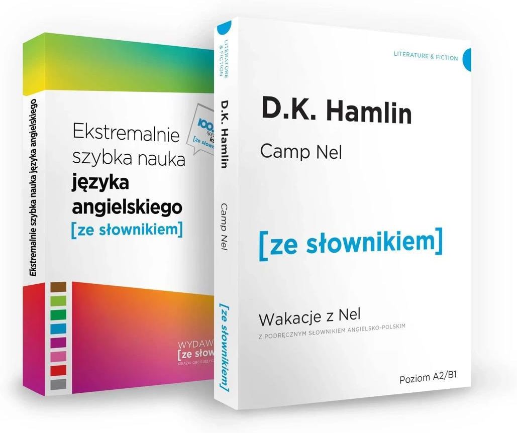 Zestaw publikacji Wydawnictwa [ze słownikiem] zawierający Camp Nel z podręcznym słownikiem angielsko-polskim i Ekstremalnie szybka nauka języka angielskiego