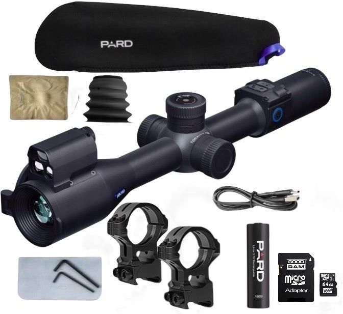 LUNETA NOKTOWIZYJNA CELOWNIK DZIEŃ NOC PARD NIGHT STALKER 4K eX 70mm + 64GB Kupując u nas, kupujesz u Autoryzowanego Sprzedawcy urządzeń marki Pard. Tym samym masz pewność, że otrzymasz oryginalny produkt oraz pełne wsparcie pozakupowe. Luneta noktowizyjna PARD Night Stalker 4K eX NS4E-70 w skrócie Sensor 4K (3840×2160 px) – krystaliczny obraz w dzień i w nocy. Okrągły ekran 2560×2560 px – naturalne pole widzenia, wysoka szczegółowość. Odświeżanie 60 Hz – płynne śledzenie ruchu, brak opóźnień. Podwójne zasilanie – wbudowana bateria 21700 + wymienna 18650, do 14 h pracy. Przygotowane gniazdo do montażu modułu IR i LRF – możliwość łatwej rozbudowy. Kalkulator balistyczny – precyzyjne obliczenia dla pewnych strzałów. Boczna regulacja ostrości – wygodne ustawienie obrazu nawet w rękawicach. Rowkowana konstrukcja sterowania – lepszy chwyt i obsługa w ciemności. Magnetyczna osłona obiektywu – szybka, cicha ochrona soczewek. Klasyczne pokrętła – tradycyjny wygląd, nowoczesna precyzja. WiFi + nagrywanie do 128 GB + wideo aktywowane 0odrzutem – dokumentacja polowania bez dodatkowych urządzeń. Wyjście HDMI – przesył obrazu w wysokiej jakości. 6 siatek celowniczych w 4 kolorach – dopasowanie do preferencji i warunków. Klasa IP67 – pełna odporność na pył i wodę Zawartość zestawu Luneta noktowizyjna Pard Night Stalker 4K eX NS4E-70 (Ogniskowa 70mm) Akumulator 18650 Pokrowiec Kabel USB Obejmy na szynę Picatinny 30 mm Muszla oczna Imbusy Karta gwarancyjna Instrukcja obsługi w języku polskim Karta pamięci Goodram microSDHC 64GB Class 10 UHS-I GRATIS Praktyczny nóż Alpina Sport Ancho GRATIS Dane techniczne Sensor obrazu [px]: 3840×2160, 0,001 lux Odświeżanie obrazu [Hz]: 60 w kolorze / 30 w mono Rozdzielczość wyświetlacza (szer. × wys.) [px]: 2560x2560 IPS Rozdzielczość wideo (szer. × wys.) [px]: 1280x1280 Rozdzielczość zdjęć (szer. × wys.) [px]: 2448x1836 Kąt widzenia: 5.8°/4.4°/7.3° Ogniskowa obiektywu [mm]: 70 Odległość od oka [mm]: 60 Zoom optyczny [×]: 5.5 Zoom cyfrowy [×]: 2 Powiększenie maksymalne [x]: 11 Ilość styli siatki celowniczej: 6 Kolory siatki celowniczej: Czerwony/biały/żółty/zielony Tryby kolorów obrazu: Kolorowy/Czarno-biały/Żółty/Zielony Iluminator IR: Brak Dalmierz laserowy: Brak Klasa szczelności IP: IP67 Typ zasilania: Wbudowany akumulator 21700 + 1x wymienne ogniwo 18650 Czas pracy: Do 14h na jednym ładowaniu Moduł WiFi: Tak + dedykowana aplikacja PardVision2 Obsługa kart pamięci: Do 128 GB Nagrywanie aktywowane odrzutem: Tak Odporność na odrzut [J]: 6000 Wymiary: (dł. x szer. x wys.) [mm]: 361 x 87 x 73 Waga [g]: 896 Symbol dostawcy: NS4E-70 Pard Night Stalker 4K eX 70 mm – Precyzyjna luneta noktowizyjna z sensorem 4K i okrągłym ekranem 2560×2560 Poznaj Pard Night Stalker 4K eX 70 mm – nowoczesną lunetę noktowizyjną, która łączy niesamowitą szczegółowość obrazu 4K z klasyczną formą i intuicyjną obsługą. Wyposażona w okrągły ekran 2560×2560 px, płynne odświeżanie 60 Hz oraz zaawansowane funkcje, takie jak nagrywanie wideo aktywowane odrzutem, moduł WiFi, czy możliwość podłączenia modułu dalmierza z iluminatorem, sprawdzi się zarówno w polowaniach nocnych, jak i dziennych. Solidna konstrukcja z klasą szczelności IP67 i odpornością na odrzut do 6000 J zapewnia niezawodność w każdych warunkach, a podwójne zasilanie pozwala na nawet 14 godzin pracy. To sprzęt stworzony dla wymagających myśliwych, którzy oczekują najwyższej jakości i pełnej wszechstronności. W tej wersji celownik nie posiada w zestawie iluminatora IR i dalmierza, lecz ma fabryczne gniazdo do ich łatwego montażu – dzięki temu można dopasować konfigurację do własnych potrzeb. Zestawy lunety z odpowiednio dopasowanym iluminatorem i dalmierzem znajdziesz na innych naszych aukcjach. Sensor 4K – niezrównana czystość obrazu dla precyzyjnego celowania Wyposażony w nowoczesny sensor PARD 4K (3840×2160 px), celownik zapewnia obraz o wyjątkowej ostrości i szczegółowości zarówno w dzień, jak i w nocy. Dzięki temu rozpoznanie celu i ocenienie odległości staje się łatwiejsze, a każdy detal jest widoczny nawet w trudnych warunkach oświetleniowych. Okrągły ekran 2560×2560 – naturalne pole widzenia Unikalny okrągły wyświetlacz IPS OLED2560x2560 dopasowany do ludzkiego oka oferuje niezwykle realistyczny obraz i szerokie pole widzenia. Pozwala to na wygodną obserwację zarówno statycznych, jak i dynamicznych scen bez zniekształceń. Cztery tryby kolorów – kolorowy, czarno-biały, zielony i żółty – pozwalają dostosować widok do warunków oświetleniowych, a możliwość wyboru jednej z 6 siatek celowniczych w 4 różnych kolorach pozwala ustawić lunetę według własnych preferencji. Funkcja Picture-in-Picture Tryb PiP powiększa fragment obrazu z krzyżem celowniczym w małym okienku w górnej części wyświetlacza, zachowując jednocześnie widoczność całej sceny. Pozwala to zachować pełny ogląd sytuacji wokół celu, przy łatwiejszym jego identyfikowaniu. Wyraźne i płynne śledzenie z częstotliwością 60 Hz W trybie kolorowym odświeżanie na poziomie 60 Hz zapewnia płynny obraz i brak efektu smużenia, co ma kluczowe znaczenie przy obserwacji szybko poruszających się obiektów. Wszystko jest krystalicznie czyste i bez opóźnień. Podwójny system zasilania – skuteczne przedłużenie czasu pracy Dzięki połączeniu wbudowanego akumulatora 21700 i wymiennej baterii 18650 celownik może pracować nawet 14 godzin bez przerwy. To pewność, że nie zabraknie zasilania podczas długiego polowania. Przygotowane miejsce na moduł IR i LRF – swoboda rozbudowy W tej wersji celownik nie zawiera w zestawie iluminatora podczerwieni ani dalmierza laserowego. Urządzenie posiada jednak fabryczne gniazdo, w które można łatwo wkręcić dodatkowy, wymienny moduł. Dzięki temu użytkownik sam