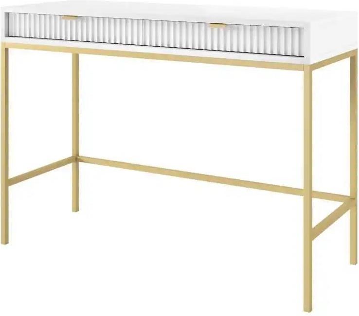 Toaletka Nova szara (T104)marki Piaski to elegancki i funkcjonalny mebel, który doskonale sprawdzi się w sypialni czy salonie, a nawet przedpokoju. Jej główną cechą to bogactwo możliwości aranżacyjnych dzięki dwóm dostępnym kolorom stelaża: złotemu lub czarnemu. Kolor stelaża wybierają Państwo w trakcie dokonywania zakupu. Front toaletki wykonany jest z ryflowanej płyty MDF o grubości 18 mm, co dodaje jej elegancji i stylu. Obrzeża frontu również są wzmocnione tworzywem ABS, a aluminiowy uchwyt nadaje jej nowoczesnego wyglądu. Nogi mebla opierają się na stalowych stelażach, które zostały pomalowane proszkowo, co zapewnia im trwałość i stabilność.Toaletka zaprojektowana jest z myślą o praktycznym użytkowaniu, posiada dwie szuflady, co zapewnia mnóstwo miejsca na przechowywanie różnorodnych przedmiotów. Wykonana z płyty laminowanej o grubości 16 mm, z obrzeżami wzmocnionymi tworzywem ABS, gwarantuje trwałość i odporność na uszkodzenia.Pochodząca z polskiej produkcji, toaletka Nova reprezentuje nowoczesny styl jak i loftowy, który doskonale wpisuje się w różnorodne aranżacje wnętrz. Jej minimalistyczna forma i wyjątkowe wykończenie sprawiają, że jest nie tylko praktycznym, ale także estetycznym dodatkiem do każdego pomieszczenia. Wymiary: Zapraszamy do zakładek Produkty z rodziny oraz Produkty podobne.Model objęty jest 2-letnią gwarancją producenta.Produkt dostarczymy do Państwa BEZPŁATNIE pod wskazany adres na terenie całego kraju.Mebel wymaga krótkiego montażu, zgodnie z załączoną instrukcją.Co WAŻNE: zgodnie z prawem i naszymregulaminemmają Państwo pełne prawo do zwrotu nieużywanych towarów, jeśli nie spełnią one Państwa oczekiwań.