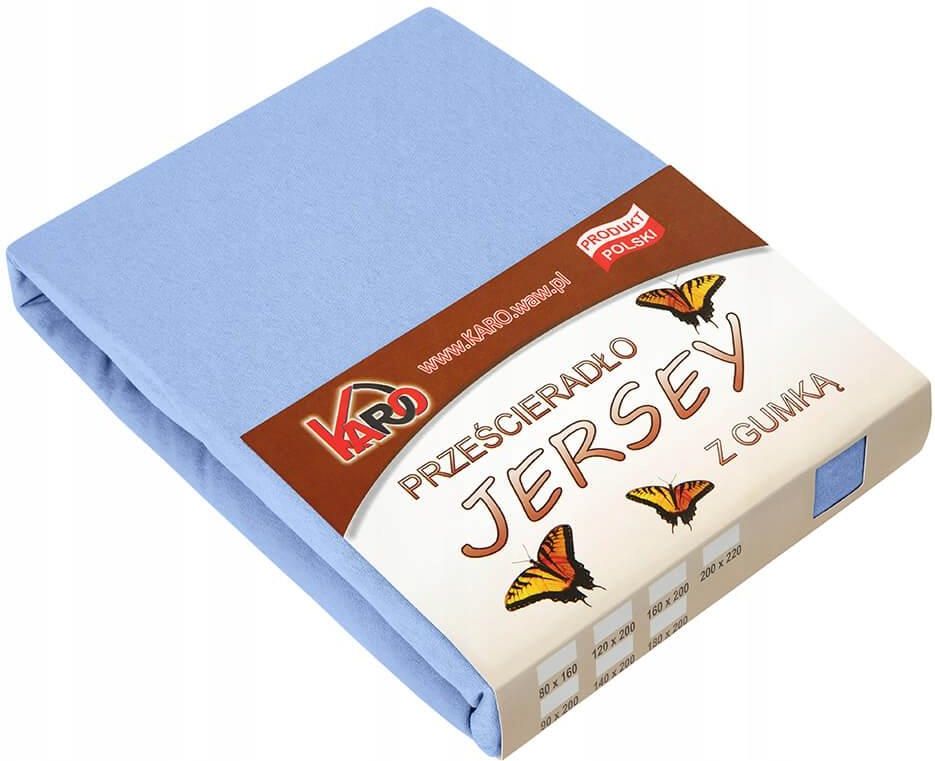 Prześcieradło jersey z gumką 80x160 błękitne 028 grube 150g/m2 KARO Prześcieradło jersey z gumką jest miękkie i przyjemne w dotyku, a spanie na nim to czysta przyjemność. Szeroka gama kolorystyczna pozwoli na dopasowanie koloru prześcieradła do każdej pościeli. Z kolei wysoka jakość zastosowanych materiałów sprawi, że długo będziesz cieszyć się wyborem prześcieradła KARO. Prześcieradło zachowuje swój fason i utrzymuje intensywny kolor nawet po wielu praniach. Do prześcieradła polecamy również pościele dostępne na innych naszych podstronach. Rozmiar: 80x160 cm Zakład prześcieradła wynosi do 15 cm i nie jest wliczany do rozmiaru. Prześcieradło przeznaczone jest na materace o wysokości do 15 cm. Dzięki bokom z narożnymi zaszewkami, profilującymi prześcieradło do kształtu materaca oraz gumce poprowadzonej w tuneliku produkt doskonale dopasowuje się i układa na materacach o różnej grubości. Tolerancja rozmiaru +/-3%. Skład tkaniny: 100% bawełna Materiał: jersey - lekko rozciągliwy. Gramatura: 150 g/m2. Prześcieradła jersey z gumką KARO występują w 14 rozmiarach tj. 60x120, 70x140, 70x160, 80x160, 80x200, 90x200, 120x200, 140x200, 160x200, 160x220, 180x200, 200x200, 200x220, 220x240 w ponad 40 kolorach. Przepis konserwacji: prać w temperaturze do 40°C, nie wybielać, prasować w temperaturze do 150°C, nie czyścić chemicznie, suszyć w stanie rozwieszonym. Indeks katalogowy: 207806 Kod kreskowy EAN: 5902837105130 Marka: KARO