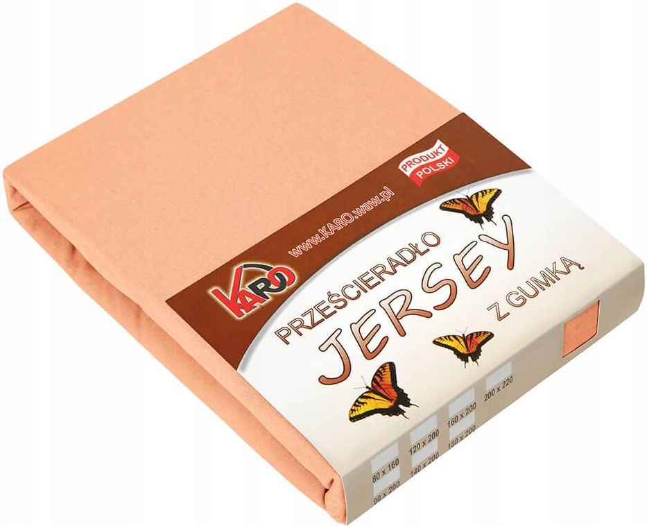Prześcieradło jersey z gumką 90x200 morelowe 007 150g/m2 KARO jest miękkie i przyjemne w dotyku, a spanie na nim to czysta przyjemność. Szeroka gama kolorystyczna pozwoli na dopasowanie koloru prześcieradła do każdej pościeli. Z kolei wysoka jakość zastosowanych materiałów sprawi, że długo będziesz cieszyć się wyborem prześcieradła KARO. Prześcieradło zachowuje swój fason i utrzymuje intensywny kolor nawet po wielu praniach. Rozmiar: 90x200 cm. Skład tkaniny: 100% bawełna. Materiał: jersey - lekko rozciągliwy i niewymagający prasowania, dzięki czemu jest wyjątkowo wygodny w użytkowaniu. Gramatura: 150 g/m2. Zakład prześcieradła wynosi ok. 15 cm i nie jest wliczany do rozmiaru. Prześcieradło przeznaczone jest na materace o wysokości do 15 cm, a zakład liczony jest na rogu prześcieradła. Dzięki bokom z narożnymi zaszewkami, profilującymi prześcieradło do kształtu materaca oraz gumce poprowadzonej w tuneliku produkt doskonale dopasowuje się i układa na materacach o różnej grubości. Przepis konserwacji: prać w temperaturze do 40°C, nie wybielać, prasować w temperaturze do 150°C, nie czyścić chemicznie, suszyć w stanie rozwieszonym. Prześcieradła jersey z gumką KARO występują w wielu rozmiarach tj. m.in.: 60x120, 70x140, 80x160, 90x200, 120x200, 140x200, 160x200, 180x200, 200x220 w ponad 40 kolorach. Produkt własny naszego sklepu, wyprodukowany w Polsce.