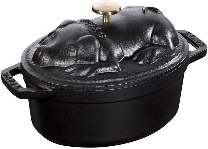 Staub Garnek Owalny Z Przykrywką Z Motywem Prosięcia Czarny 1L (St1121725) Sulejówek