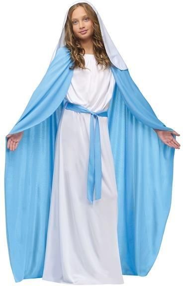 STRÓJ "MARYJA BIAŁA SUKIENKA" 120/130, JASEŁKA Ten uroczy strój Maryja "Biała Sukienka" sprawi, że Twoja mała księżniczka poczuje się wyjątkowo podczas jasełek. Składa się z eleganckiej, długiej sukienki w kolorze białym, która ozdobiona jest przyszytą peleryną, tworząc piękną kompozycję. Aby dopełnić całość, do zestawu dołączony jest także pas oraz urocza chusta na głowę, które dodadzą blasku całej stylizacji. Wymiary: długość sukni: ok. 95 cm, mierzona od ramienia szerokość w pasie: ok. 45 cm, mierzona na płasko, bez rozciągania, obwód do ok. 100 cm długość chusty: ok. 65 cm, mierzona od czubka głowy długość paska: ok. 148 cm