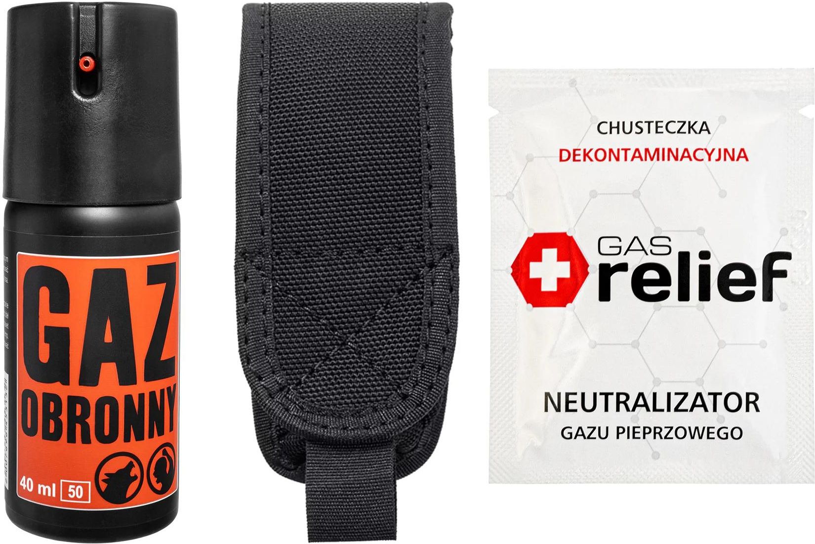 Tm Gaz Pieprzowy Obronny 50ml Stożek + Chusteczka Neutralizująca Gas Relief + Kabura Zestaw Sulejówek