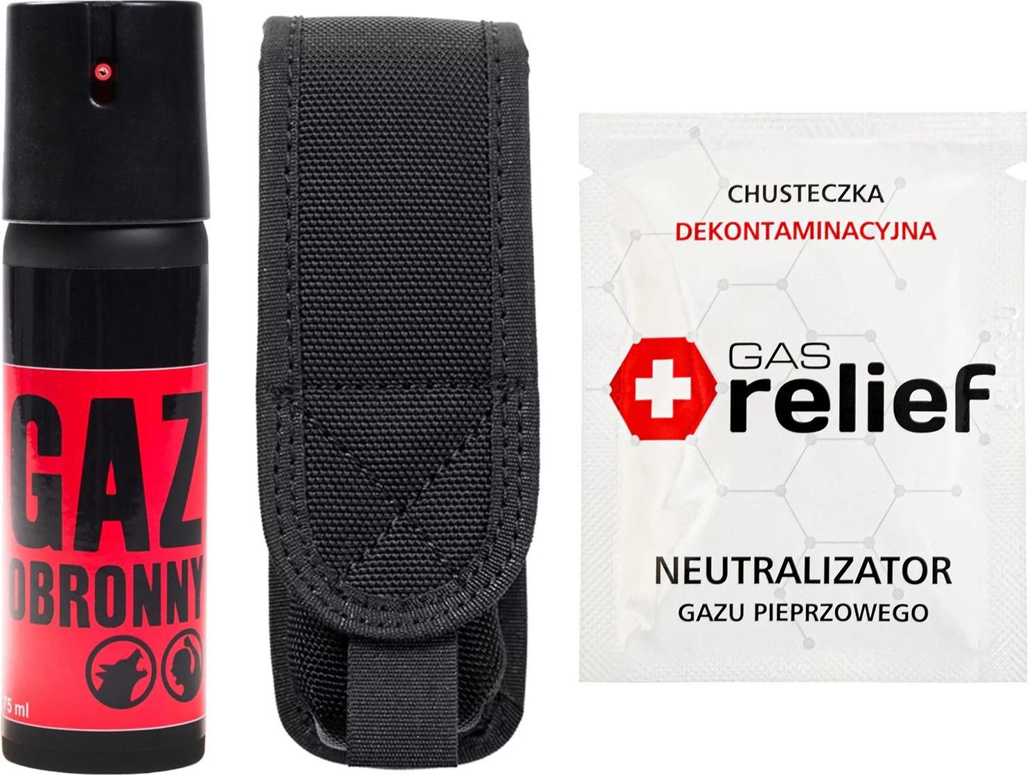 Tm Gaz Pieprzowy Obronny 75ml Stożek + Chusteczka Neutralizująca Gas Relief + Kabura Zestaw Sulejówek