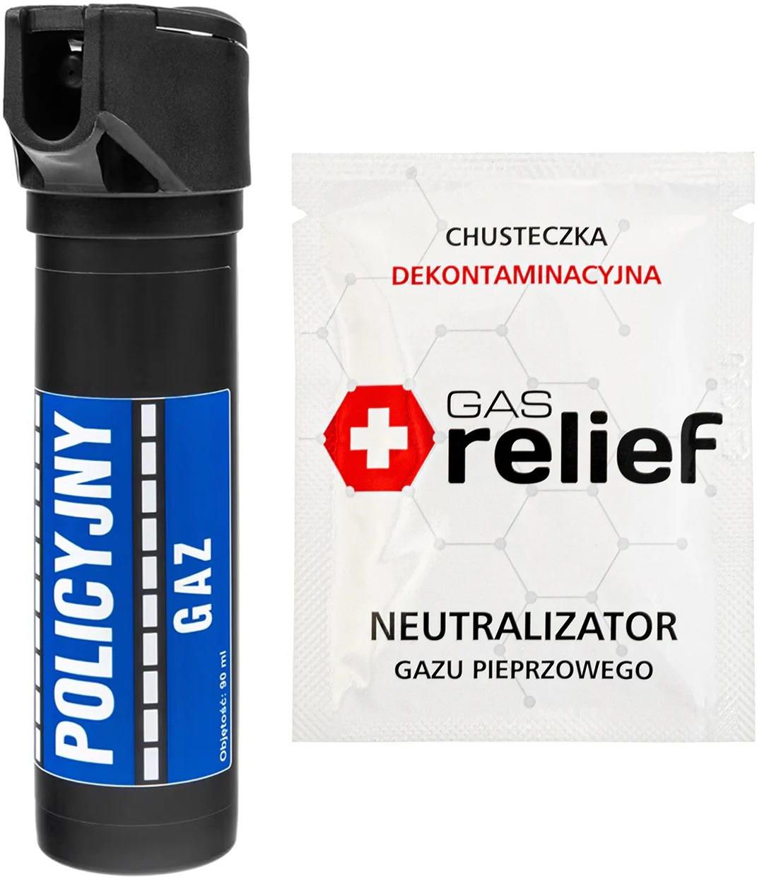Tm Gaz Pieprzowy Policyjny 90ml Strumień + Chusteczka Neutralizująca Gas Relief Zestaw Sulejówek