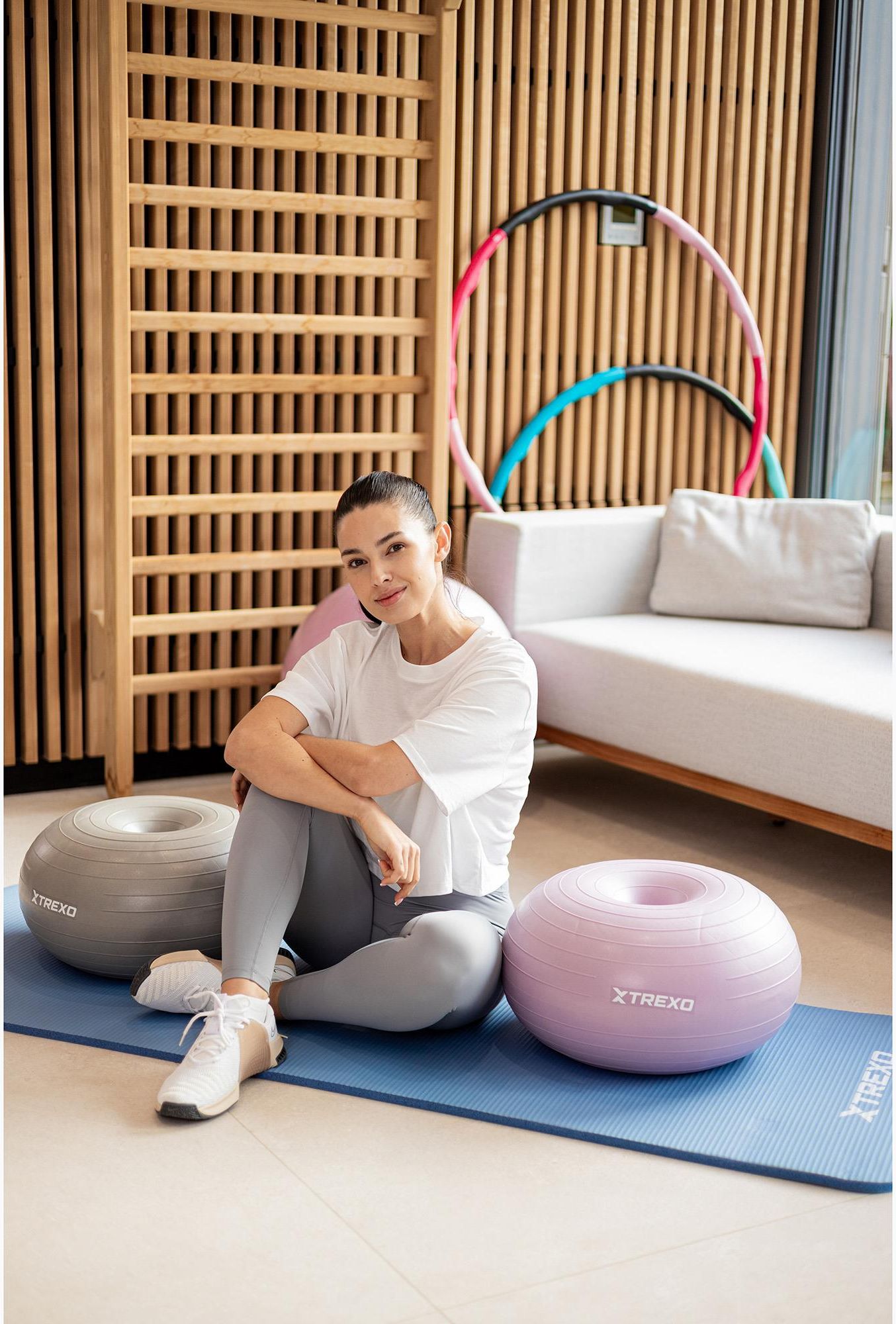 Piłka gimnastyczna TREXO Donut TXO-B4Z073-VT 55 cm fioletowy 50 x 28 Piłka gimnastyczna TREXO Donut To innowacyjne narzędzie do ćwiczeń, które łączy funkcjonalność z komfortem. Dzięki swojemu unikalnemu kształtowi i wysokiej jakości wykonaniu piłka wspiera rozwój mięśni, poprawę postawy i ogólną …