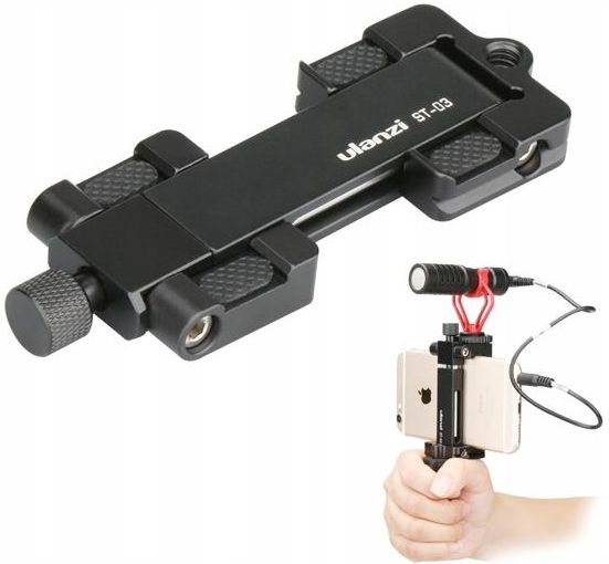Wysokiej Jakości, Profesjonalny, Uniwersalny uchwyt do telefonów / smartfonów na statyw - gwint 1/4" Dedykowany do telefonów / smartfonów o szerokości od 58 do 104 mm Składana konstrukcja uchwytu, niezwykle kompaktowa i poręczna Bardzo solidna konstrukcja wykonana z aluminium oraz stali nierdzewnej Śrubowe dopasowanie wielkości uchwytu, bardzo trwałe i pewne mocowanie telefonu w uchwycie Uchwyt o szerokim zakresie regulacji Idealnie pasuje do wszystkich urządzeń mobilnych o szerokości od 58 do 104 mm Wbudowana zimna stopka typu ISO pozwalająca na mocowanie dodatkowych akcesoriów w uchwycie Wbudowany standardowy gwint mocujące 1/4"pozwalający na zamocowanie uchwytu na każdym uchwycie, statywie, monopodzie i innym akcesorium, posiadającym standardowy gwint mocujący 1/4" Podstawka wykonana na wzór szybko-złączki statywowej typu Arca Swiss, pozwalającej na szybkie mocowanie uchwytu w głowicach statywów Wkładki antypoślizgowe zapewniające wysoką stabilność mocowanego urządzenia Idealny dodatek dla vlogerów do mobilnego wideofilmowania. Marka: ULANZI Kolor: Czarny Model: ST-03 Uchwyt dla Profesjonalistów Funkcjonalność to największa zaleta tego produktu. Z kolei użycie wysokiej jakość materiałów na dobre wpisało się w filozofię marki Ulanzi. Nowoczesny uchwyt na telefon / smartfon z gorącą stopką dedykowany jest dla vlogerów, live streaming'owców, youtuberów, osób publikujący swoje filmiki w sieci i amatorów chcących uzyskać dobrej jakości filmy wideo. Produkt wykonano z najwyżej jakości materiałów co gwarantuje jego znakomitą ergonomie i wysoką trwałość. OPIS PRODUKTU Uchwyt firmy ULANZI to doskonały produkt dla wszystkich posiadaczy nowoczesnych telefonów komórkowych / smartfonów z wbudowanymi aparatami fotograficznymi. Uchwyt pozwala na zamocowanie telefonu do każdego statywu fotograficznego, uchwytu, monopodu ze standardowym gwintem mocującym 1/4". Podpięcie telefonu do uchwytu zewnętrznego gwarantuje stabilizację obrazu, dzięki czemu będziemy mogli wykonywać dobrej jakości zdjęcia nawet w bardzo słabych warunkach oświetleniowych. Dodatkowo zamocowanie telefonu na statywie pozwoli na wykonywanie autoportretów i zdjęć grupowych. Zamocowanie telefonu na statywie z zastosowaniem adaptera umożliwia wykonywanie zdjęć panoramicznych oraz kręcenie filmów bez poruszenia, "trzęsienia się" obrazu. Podstawka wykonana na wzór szybko-złączki statywowej typu Arca Swiss, pozwalającej na szybkie mocowanie uchwytu w głowicach statywów Kluczowe cechy produktu 1 x zimna stopka typu ISO na akcesoria video / foto 1x gwint 1/4" znajdujący się na spodzie uchwytu, umożliwiający montaż na statywie / sliderze / monopodzie, itp. płynna regulacja mocowania uchwytu, która gwarantuje pewne i stabilne zamocowanie telefonu o każdej szerokości w zakresie 58-104 mm. uchwyt wykonany jest z solidnego aluminium z elementami ze stali nierdzewnej, który zapewnia wysoką jakość, trwałość i komfort użytkowania śrubowy, bardzo pewny zacisk z płynną regulacją rozstawu intuicyjny montaż część mocująca uchwytu wyłożona delikatną pianką oraz gumą antypoślizgową, gwarantującą stabilne i bezpieczne zamocowanie telefonu. możliwość zamontowania uchwytu do każdego statywu fotograficznego ze standardowym gwintem mocującym 1/4". Składana konstrukcja uchwytu, niezwykle kompaktowa i poręczna. Uchwyt posiada zimną stopkę typu ISO ? jest to jeden z najpopularniejszych sposobów montażu akcesoriów video / foto. Rozwiązanie to umożliwia zainstalowanie na uchwycie takich akcesoriów jak: lampa LED / lampa błyskowa mikrofon monitor podglądowy Wysoka kompatybilność Uchwyt dedykowany jest do większości nowoczesnych smartfonów / telefonów dostępnych na rynku. W uchwycie można zamontować telefon / smatrfon o szerokości od 5,8 cm do 10,4 cm. Więcej wrażeń, więcej możliwości, doskonałe ujęcia Z uchwytem Ulanzi Twoje nagrania video nabiorą pożądanego profesjonalizmu Dobra jakość dźwięku osiągniętego poprzez zamontowanie zewnętrznego mikrofonu Lepsza jakość obrazu osiągnięta poprzez zamontowanie lampy LED Stabilność ujęć, bez nieefektywnych potrząśnięć obrazu, osiągnięta poprzez zamontowanie uchwytu na statywie / monopodzie / pasku na głowę i każdym innym mocowaniu ze standardowym gwintem mocującym 1/4" Montaż w kilka chwil Telefon mocowany jest w sposób solidny za pomocą śrubowego zacisku. NAJBARDZIEJ SOLIDNY I PEWNY RODZAJ MOCOWANIA ZASTOSOWANY W UCHWYTACH NA TELEFON. Idealnie sprawdzi się w najtrudniejszych warunkach. Uchwyt pokryty jest gumą antypoślizgową, która skutecznie zabezpiecza telefon przed zarysowaniem, czy wypadnięciem. Dane techniczne: Materiał wykonania: metal Wymiary złożonego uchwytu: 11 x 1,1 x 3,8 cm Mocowania: 1 x żeńskie gwintowe 1/4", 1 x zimna stopka typu ISO Uwaga! Mikrofony, statywy, telefony i inne akcesoria dodatkowe przedstawione na zdjęciach pełnią jedynie rolę podglądową i nie są przedmiotem sprzedaży. Uchwyt pasuje m.in. do następujących telefonów iPhone : 4s / 5 / 5c / 5s / 6 / 6 Plus / 6s / 6s Plus / SE / 7 / 7 Plus / X / 8 / 8 PLUS / X / XS / XR / XS MAX Huawei Ascend : Mate 9 / Mate 9 Pro / Mate 7 / G730 / G700 / P7 / P6 / G6 / P7 / Y520 / Y540 / Y320 / Y221 / Y550 / Y530 / Y330 / G7 / G6 / G630 / G620S / G730 / Y600 / G525 / G510 / P6S / Y511 / G700 / Y300 Huawei : P30 / P30 PRO / P20 / P20 PRO / NOVA 3 / NOVA 2 / MATE RS / MATE 10 / MATE 10 PRO / NOVA / NOVA SMART / NOVA PLUS / P Smart / Mate 9 / Mate 9 Pro / Mate 8 / P10 / P10 Lite / P10 PLUS / P9 PLUS / P9 / P9 Lite / Y9 / Y5 PRIME / Y7 PRIME / Y7 / Y3 / Y5 / Y6 / Y6II / Y6 PRO / Y5II / Y3II / Enjoy 5 / Mate S / Y635 / Y625 / G8 / P8 / P8 Lite / P8 max / ShotX / GX8 / Nexsus 6P / GT3 / GR5 / GR3 Huawei Honor : 3X / 3C HTC : U12+ / 12 / 12+ / U11 / U11 Life / U11+ / U11 / 10 evo / 10 / 10 Lifestyle HTC Desire : 650 / 10 lifestyle / 825 / 630 / 630 Dua