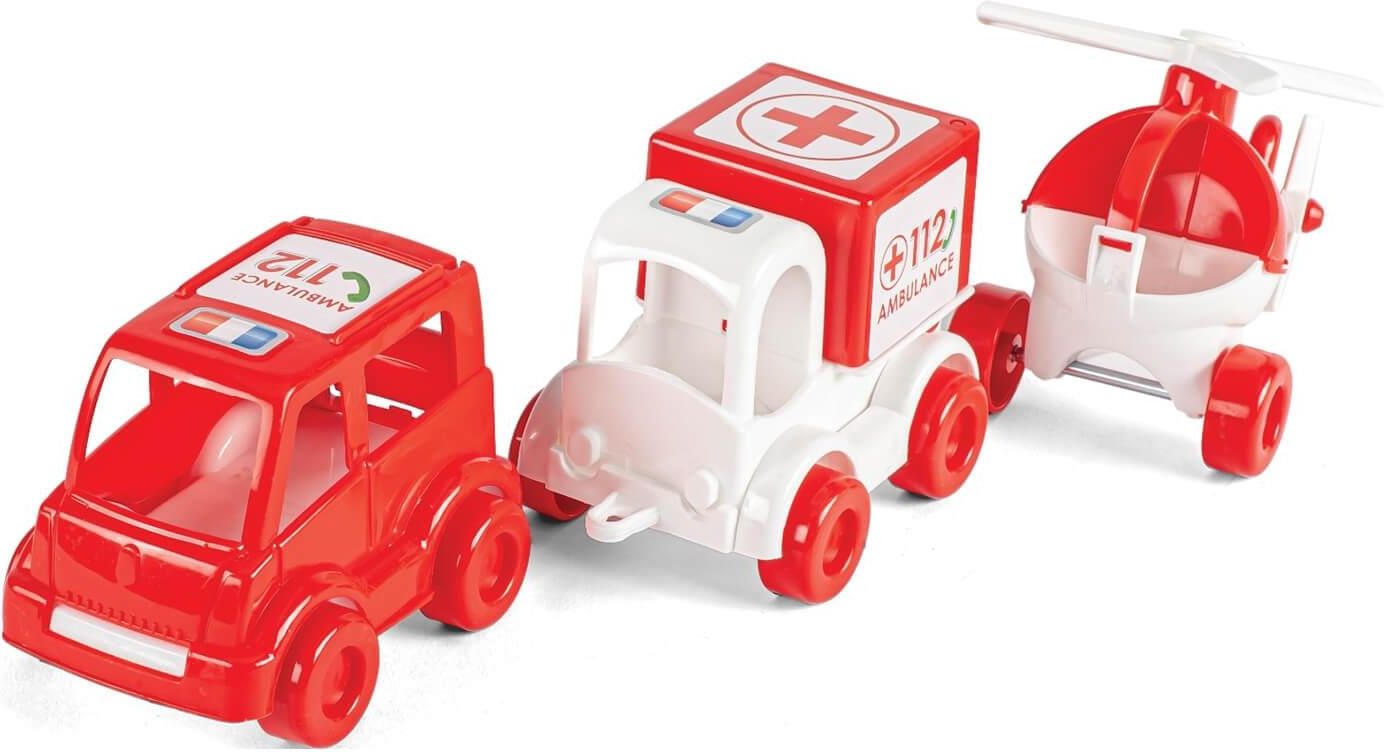 Wader Kid Cars Szpital 60025 zestaw zawierający 3 pojazdy: karetkę, transport medyczny i helikopter zestaw pojazdów z serii Kid Cars pozwala rozwijać wyobraźnię i kreatywność dzieci, wspiera rozwój ich umiejętności manualnych i motorycznych oraz naukę kolorów; wzmacnia kompetencje społeczne …
