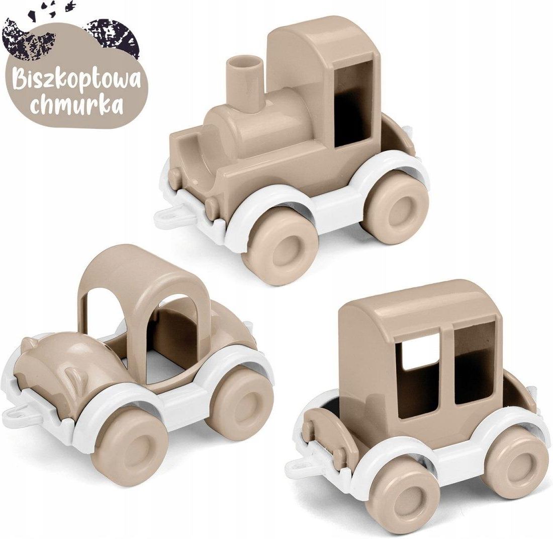 Zestaw autek Kid Cars trio z serii BISZKOPTOWA CHMURKA Zestaw autek Kid Cars Trio to ulubiona zabawka dla najmłodszych miłośników motoryzacji. Mają opływowe kształty i doskonale mieszczą się w małych rączkach. Są zróżnicowane tematycznie więc można się nimi bawić na wiele sposobów. Dodatkowo idealnie pasują do pokoju dziecięcego, w tej samej modnej kolorystyce – są zabawką i ozdobą pokoju jednocześnie. Zestaw autek Kid Cars trio składa się z trzech pojazdów w kolorach jasnego beżu oraz bieli i jasnej szarości, w dwóch oddzielnych zestawach do wyboru: Skład: garbus, lokomotywa i wagonik. lub Skład: wywrotka, ciężarówka, cysterna *Przedstawiona aranżacja wnętrza ma charakter jedynie poglądowy, wyposażenie jest przykładowe, nie stanowi oferty. Wszystkie autka mają długość 10 cm z ruchomymi elementami dlatego doskonale mieszczą się w małych rączkach mają opływowe kształty i wyjątkowe kolory, są zróżnicowane tematycznie więc można się nimi bawić na wiele sposobów Wywrotka ma ruchomy kiper, który podnosi się i opuszcza, może przewozić drobne skarby i rozładowywać w dowolnym miejscu Wszystkie autka mają ruchome elementy i można je ze sobą łączyć długość jednego autka to 10cm Zalety zabawą autkami Kid Cars Trio: zestaw autek Kid Cars Trio pozwala rozwijać wyobraźnię i kreatywność dzieci, wspiera rozwój ich umiejętności manualnych i motorycznych, wspiera rozwój kompetencji społecznych dziecka i integrację z rówieśnikami, uczy współpracy i dzielenia się z innymi wykonane z najwyższej jakości, trwałego i wytrzymałego na warunki atmosferyczne tworzywa, bezpieczne, wyprodukowane zgodnie z normami unijnymi Produkt dedykowany dzieciom 1+ Najważniejsze cechy: Zabawki w oryginalnych kolorach: połączenie jasnego beżu, mlecznej szarości oraz bieli idealnie pasujące do pokoju dziecięcego w tej samej kolorystyce. Pełnią funkcję zabawek oraz ozdoby pokoju jednocześnie. Produkty przeznaczone dla dzieci 1+ Rozwijają wiele podstawowych umiejętności dzieci 1+ takich jak:motoryka mała, zręczność i precyzja ruchów, koordynacja wzrokowo-ruchowa. Wpływają również na rozwój logicznego myślenia i koncentracji, mają pozytywny wpływ na myślenie przestrzenne, uczą dyscypliny oraz koncentracji. Zapraszając do zabawy kolegów i koleżanki dziecko integruje się z rówieśnikami rozwijając swoje kompetencje społeczne. Zabawki wykonane są z najwyższej jakości, certyfikowanych materiałów bezpiecznych dla dzieci, charakteryzujących się odpornością na warunki atmosferyczne. Ta zabawka dostępna jest również w zestawach zabawek Toys in Trends, w kolekcji BISZKOPTOWA CHMURKA Zabawki z serii Toys in Trends to: DOSKONAŁY POMYSŁ NA WYPOSAŻENIE ZABAWKAMI CAŁEGO POKOJU DZIECKA W MODNEJ ARANŻACJI ZABAWKI OGÓLNOROZWOJOWE: duża wywrotka wspierająca naukę chodzenia, dostępna na innej aukcji piramidka czyli klasyczna zabawka edukacyjna, dostępna na innej aukcji kręgle doskonałe do zabaw ruchowych,dostępna na innej aukcji autka Kid Cars Trio do zabrania wszędzie ze sobą komplet do piasku zamek do zabawy na plaży, w wodzie i w ogrodzie, dostępny na innej aukcji komplet naczyń kuchennych do zabawy w odgrywanie ról, dostępny na innej aukcji