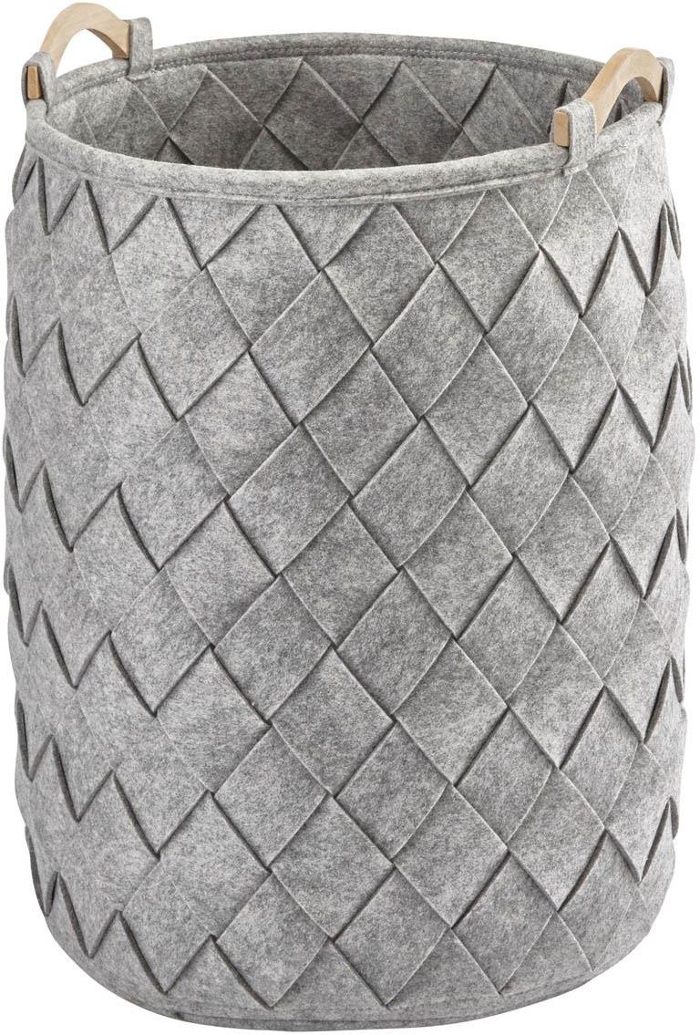Kosz na pranie Aquanova Amy. Unikalny design i naturalne detale. Kosz na pranie Aquanova Amy to połączenie nowoczesnego designu z ciepłem naturalnych materiałów. Wykonany z trwałego poliestrowego filcu o grubości 4 mm, zachwyca solidnością i przyjemną w dotyku strukturą. Drewniane uchwyty dodają mu elegancji i ułatwiają przenoszenie, a pleciona faktura nadaje całości subtelny, dekoracyjny charakter. Cechy kosza na pranie Aquanova Amy Wysoka jakość wykonania – filc o grubości 4 mm zapewnia trwałość i stabilność kształtu Drewniane uchwyty – naturalny akcent i wygoda użytkowania Pojemność 75 l – idealny do przechowywania ubrań i tekstyliów Uniwersalny design – pasuje do łazienki, sypialni lub pralni Kolekcja Amy – możliwość stworzenia spójnego zestawu z koszykami i pudełkiem na chusteczki Kosz Aquanova Amy to nie tylko praktyczny pojemnik na bieliznę, ale również stylowy element wystroju. Dzięki swojej elegancji i prostocie doskonale komponuje się z wnętrzami w stylu skandynawskim, nowoczesnym czy naturalnym. Dane techniczne kosza na pranie Aquanova Amy Materiał: 100% poliestrowy filc, drewnoŚrednica: 40 cmWysokość: 60 cmPojemność: 75 l