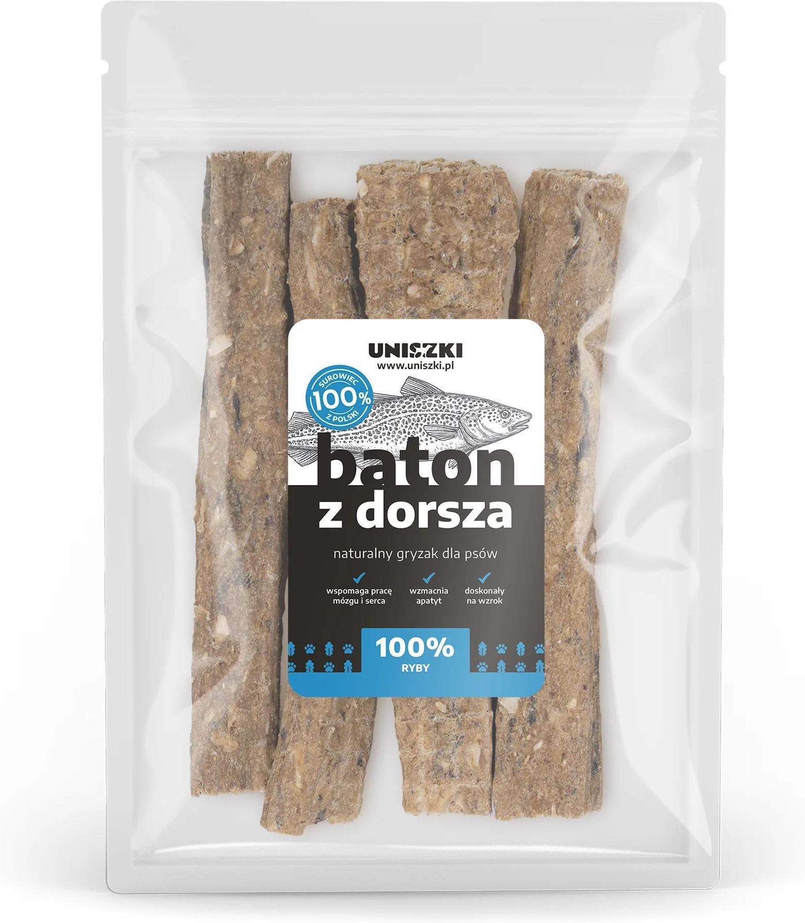 Baton z dorsza to pyszny przysmak dla psów. Naturalny surowiec, pochodzenia polskiego. W paczce znajdują się 4 sztuki. Baton z dorsza to pyszny przysmak dla psów. Naturalny surowiec, pochodzenia polskiego. W paczce znajdują się 4 sztuki.