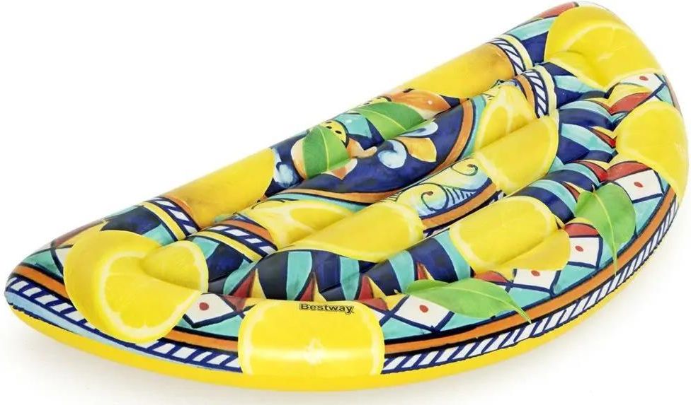 Bestway Materac Dmuchany Cytryna 43364 Dmuchany Materac Sycylia w kształcie cytryny to tegoroczna propozycja firmy Bestway inspirowana kolorystyką śródziemnomorską. Genialna soczysta grafika będzie wspaniałym dodatkiem do każdego pleneru. Kolorowe sycylijskie wzory materaca przyciągną uwagę plażowiczów spędzających niejeden wakacyjny dzień piaszczystej plaży. Jednoosobowy materac jest lekki i można go zabrać ze sobą dosłownie wszędzie. Został wykonany z wytrzymałego winylu, który uniesie osobę o maksymalnej wadze 90 kg, posiada również zawór bezpieczeństwa zapobiegający wydostawaniu się powietrza na zewnątrz. Cytrynowy materac świetnie będzie reprezentował się na każdym wakacyjnym zdjęciu. Jego kształt pozwoli na komfortowe pływanie i błogie leniuchowanie. Zestaw zawiera: - materac Sycylia - łatka naprawcza certyfikat: CE wiek: 14 + wymiary opakowania: 39 x 25 x 4,5cm