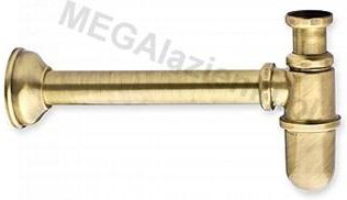 Syfon umywalkowy, butelkowy, z regulowanymi długościami rur, z otworem rewizyjnym ułatwiającym czyszczenie, w całości wykonany z mosiądzu. Kolor: stare złoto.