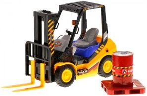 Zdalnie sterowany, doskonale wykonany i w pełni funkcjonalny wózek widłowy zapewni niezapomnianą zabawę każdemu małemu magazynierowi. Ten wspaniały pojazd jest w pełni funkcjonalnym wózkiem widłowym R/C wyposażonym w zdalnie sterowane widły, dzięki którym zabawa w małego magazyniera staje się niezwykle realistyczna. Widły wózka podnoszą się na wysokość aż 28 centymetrów! Dzięki dołączonej palecie i beczce można nabrać wprawy w obsłudze wózka widłowego. Dodatkowe realistyczne przednie oświetlenie działające podczas jazdy w przód dopełnia efektu pracy na placu budowy lub w magazynie. Duże 7 centymetrowe koła zapewnią dobrą przyczepność a 12,5 centymetrowy rozstaw osi zapewni odpowiednią stabilność. Mega wózek wyposażony jest w multifunkcyjnego, radiowego pilota, który pozwala: - podnoszenie wideł - opuszczanie wideł - jazda do przodu - jazda do tyłu - skręt w prawo - skręt w lewo Wyposażenie: - wózek widłowy - pilot - antena - akumulator zasilający wózek widłowy - kabel USB - 2 x bateria AA Wymiary wózka widłowego: długość (z widłami) 37 cm wysokość (z opuszczonymi widłami) 19 cm szerokość 12,5 cm Pojazdy zdalnie sterowane RC pozwalają na rozwijanie takich umiejętności jak kierowanie pojazdami, koncentracja, zdolności manualne, szybkość myślenia, zwinność i spryt. Pojazdy RC są doskonałym sposobem na wspólną zabawę w gronie najbliższych. Dzięki takim zabawom dzieci, mogą spędzić więcej czasu z rodzicami. Całość zapakowana w estetycznym kartonie, a styropianowa forma w środku skutecznie zabezpieczy zabawkę podczas dostawy. Wózek widłowy RC będzie niezastąpiona dla każdego małego inżyniera. Zestaw zapakowany w bardzo ładne kolorowe pudełko, idealnie nadające się na prezent.