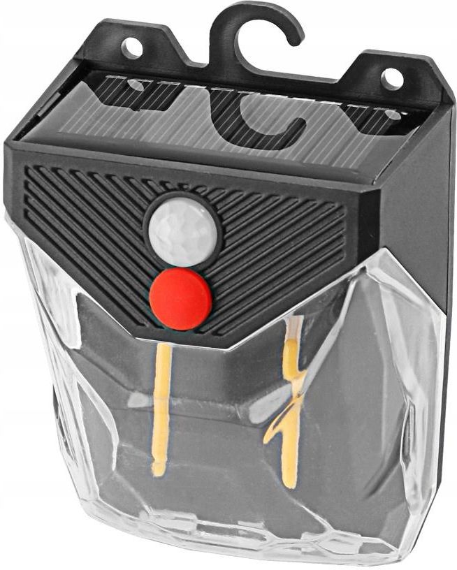 Lampa solarna na ścianę z czujnikiem zmierzchu i ruchu Ekologiczny i energooszczędny sposób oświetlenia domostwa. Cechy produktu: Lampa zasilana energią słoneczną - jest ekologiczny i energooszczędny, zużywa 10 razy mniej energii niż tradycyjne oświetlenie Wbudowany akumulator Obudowa wykonana z solidnego tworzywa sztucznego Wbudowany czujnikświatła / zmierzchu w panelu solarnym 3 tryby świecenia Wbudowany czujnikruchu Łatwy w instalacji (zestaw montażowy w opakowaniu) Specyfikacja: Kąt wychwytywania ruchu: 120° Dystans wychwytywanego ruchu: do 5 metrów Czas świecenia: ok. 20 s Barwa światła: zimna ciepła Wymiary: 7 x 10 x 4,5 cm Tryby świecenia: Lampa jest wyłączona, po wykryciu ruchu świeci przez ok. 20 sekund pełną mocą Lampa świeci z mocą 30%, po wykryciu ruchu włącza się pełna moc na ok 20 sekund Stałe świecenie, niezależnie od czujnika ruchu, z 50% mocy
