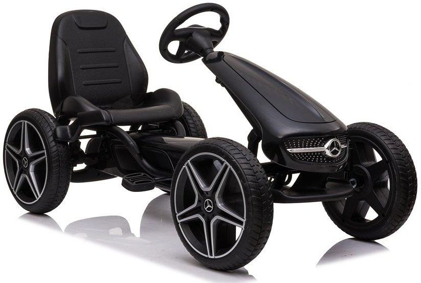 Czarny gokart na pedały MercedesGokarty na pedały to pojazdy stworzone z myślą o ruchliwych dzieciakach, które nie potrafią usiedzieć w miejscu. Jeśli Twoja pociecha już od pierwszych miesięcy życia przejawia zamiłowanie do ruchomych zabawek, prezentowany