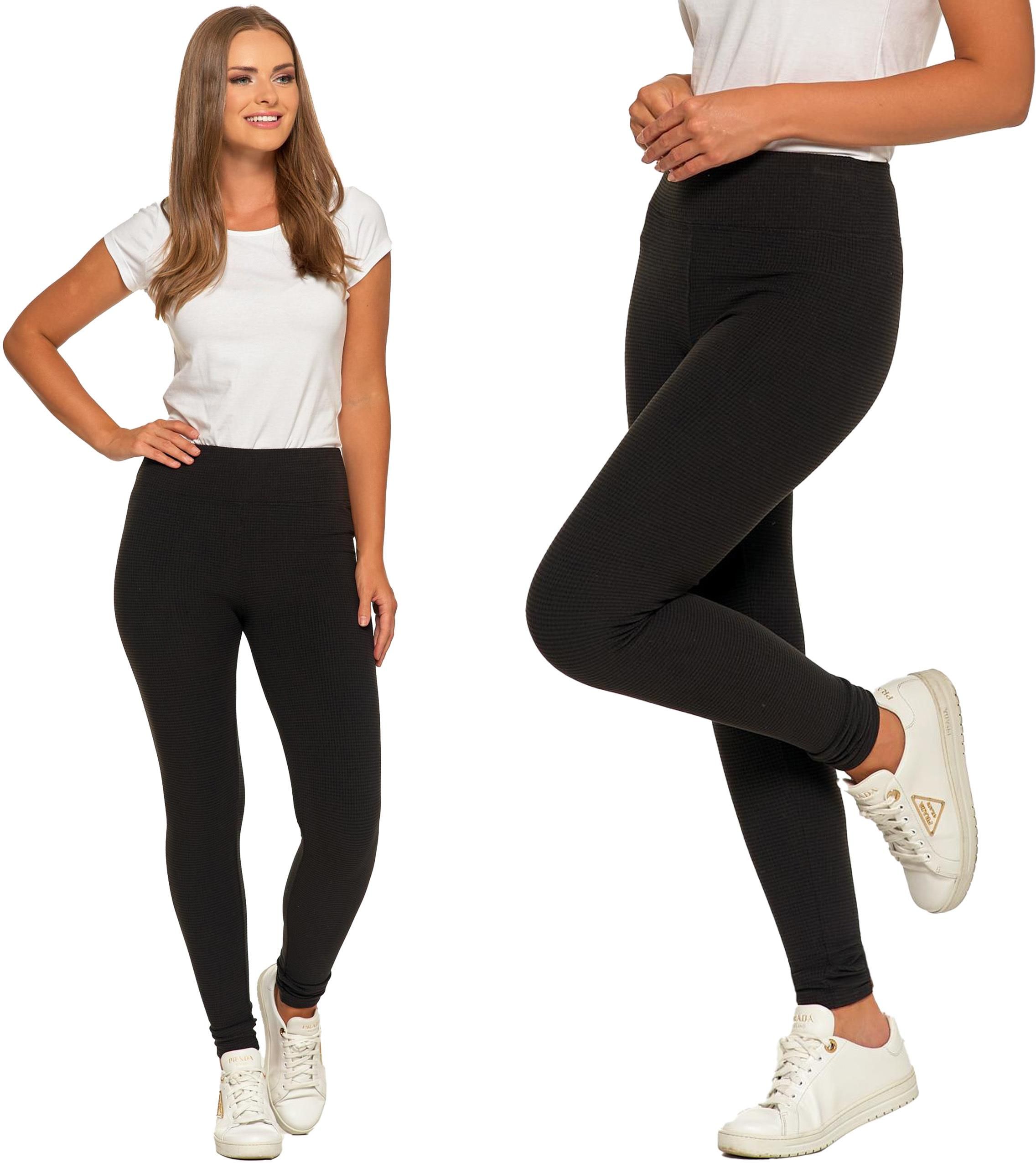 Damskie legginsy firmy MORAJ kod producenta: RDL1800-014 kolor: Black Te legginsy damskie to idealny wybór na chłodniejsze dni dzięki ciepłemu, grubszemu materiałowi o gramaturze 170 g/m². Wykonane z tkaniny o prążkowanej strukturze z efektem wizualnym gofrowym, łączą komfort noszenia z nowoczesnym, stylowym wyglądem. Wysoki stan oraz elastyczność materiału sprawiają, że legginsy doskonale dopasowują się do sylwetki, podkreślając talię i zapewniając pełną swobodę ruchów. Długie nogawki idealnie przylegają do ciała, a nieprześwitujący materiał gwarantuje pewność w każdej sytuacji. To doskonały wybór zarówno na co dzień, do aktywności fizycznej, jak i casualowych stylizacji. PARAMETRY TECHNICZNE Materiał: 90% poliester, 10% elastan Gramatura materiału: 170 g/m² Wysoki stan – efektownie podkreśla talię Długie nogawki dopasowane do ciała Prążkowana struktura z efektem gofrowym Elastyczny materiał zapewniający komfort i swobodę ruchów Nieprześwitujący materiał
