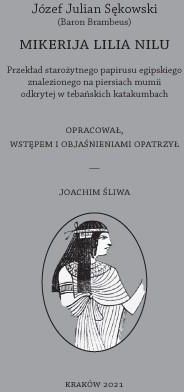Mikerija Lilia Nilu Wydawnictwo: Deadpxels EAN: 9788393794140 "Mikerija Lilia Nilu. Przekład starożytnego papirusu egipskiego znalezionego na piersiach mumii odkrytej w tebańskich katakumbach" W dorobku Józefa Juliana Sękowskiego (1800-1858), znanego orientalisty, znajdują się również teksty o …