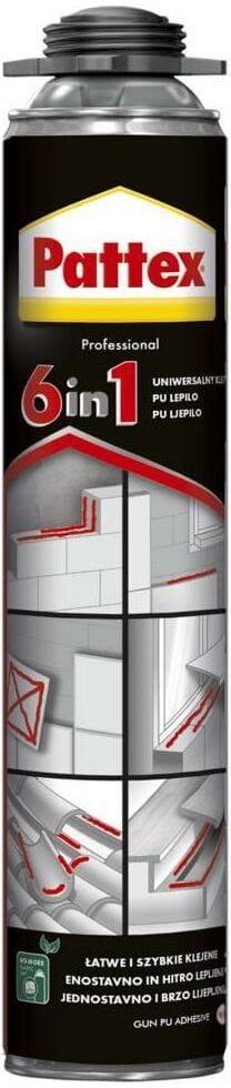 Klej PATTEX uniwersalny 6w1 750 ml pistoletowy Pattex 6w1 to poliuretanowy klej montażowy, który zastępuje tradycyjne cementowe zaprawy murarskie. Doskonały do zastosowań zarówno wewnętrznych, jak i zewnętrznych, zapewnia mocne i trwałe połączenia bez potrzeby użycia prądu, wody czy specjalistycznego sprzętu. Uniwersalne zastosowanie w budownictwie Bloczki z betonu komórkowego Drewno i płyty OSB Płyty gipsowo-kartonowe (G-K) Elementy styropianowe Powłoki bitumiczne Szkło, metal, blacha ocynkowana i powlekana Świetny wybór do wykonywania ścianek działowych, mocowania elementów dekoracyjnych oraz prac naprawczych. Najważniejsze zalety produktu 6w1 – wielofunkcyjność – zastępuje cementowe zaprawy murarskie i tradycyjne metody klejenia. Gotowy do użycia – nie wymaga prądu, wody ani specjalistycznego sprzętu. Szybka aplikacja i korekta – możliwość mocowania w ciągu 3 minut, a korekta pozycji w ciągu 1 minuty. Szybkie wiązanie – mocne połączenie już po 2 godzinach, pełna wytrzymałość po 24 godzinach. Do wnętrz i na zewnątrz – odporny na mróz i wodę, idealny do różnych warunków atmosferycznych. Łatwość aplikacji – klej w formie pianki do aplikacji przy użyciu pistoletu. Beżowy kolor po wyschnięciu – estetyczny wygląd i dyskretne wykończenie. Bezpieczny skład – bez rozpuszczalników, przyjazny dla środowiska. Wysoka wytrzymałość na ścinanie i doskonała przyczepność – pewność trwałego połączenia. Szeroki zakres temperatur stosowania – od 10°C do 30°C. Stabilność i trwałość – odporny na warunki atmosferyczne i czynniki zewnętrzne. Specyfikacja techniczna Typ żywicy: Poliuretan (PU) Kolor po wyschnięciu: Beżowy Czas mocowania: 3 minuty Czas korekty: 1 minuta Czas wiązania: 2 godziny Całkowity czas schnięcia: 24 godziny Odporność na mróz i wodę – idealny do zastosowań zewnętrznych Minimalna temperatura stosowania: 10°C Maksymalna temperatura stosowania: 30°C